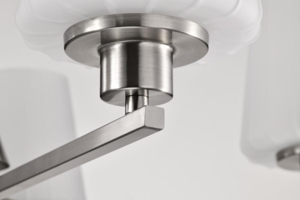 Finished in Brushed Nickel with Etched White Glass