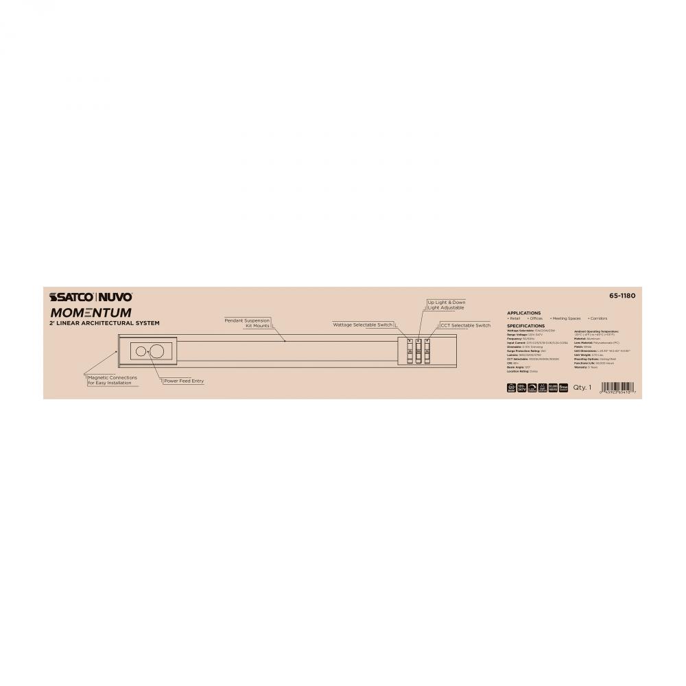The SATCO/NUVO Momentum 65-1180 delivers a seamless, customizable lighting solution engineered for architects, designers, and installers who need both precision and flexibility in commercial, hospitality, retail, institutional, and modern office environmen