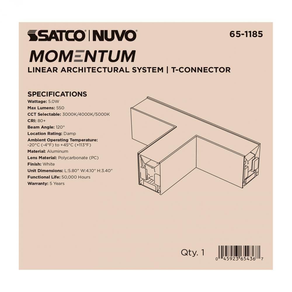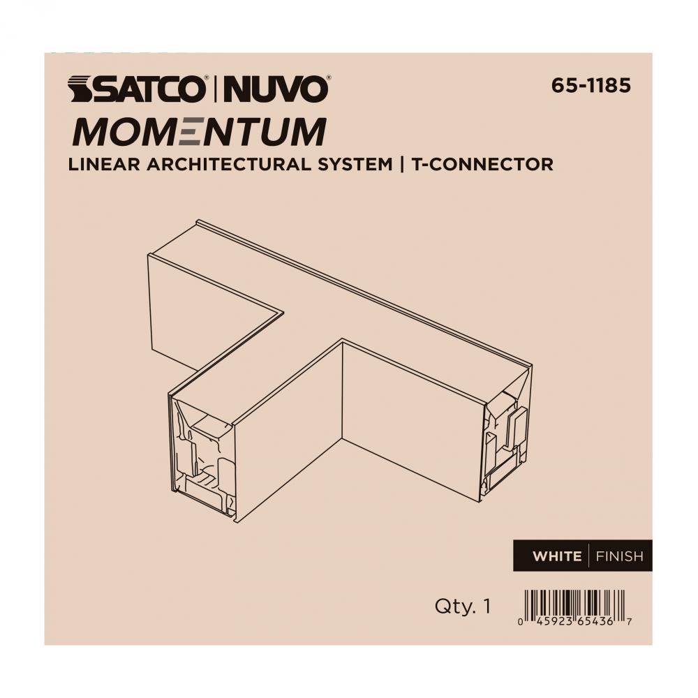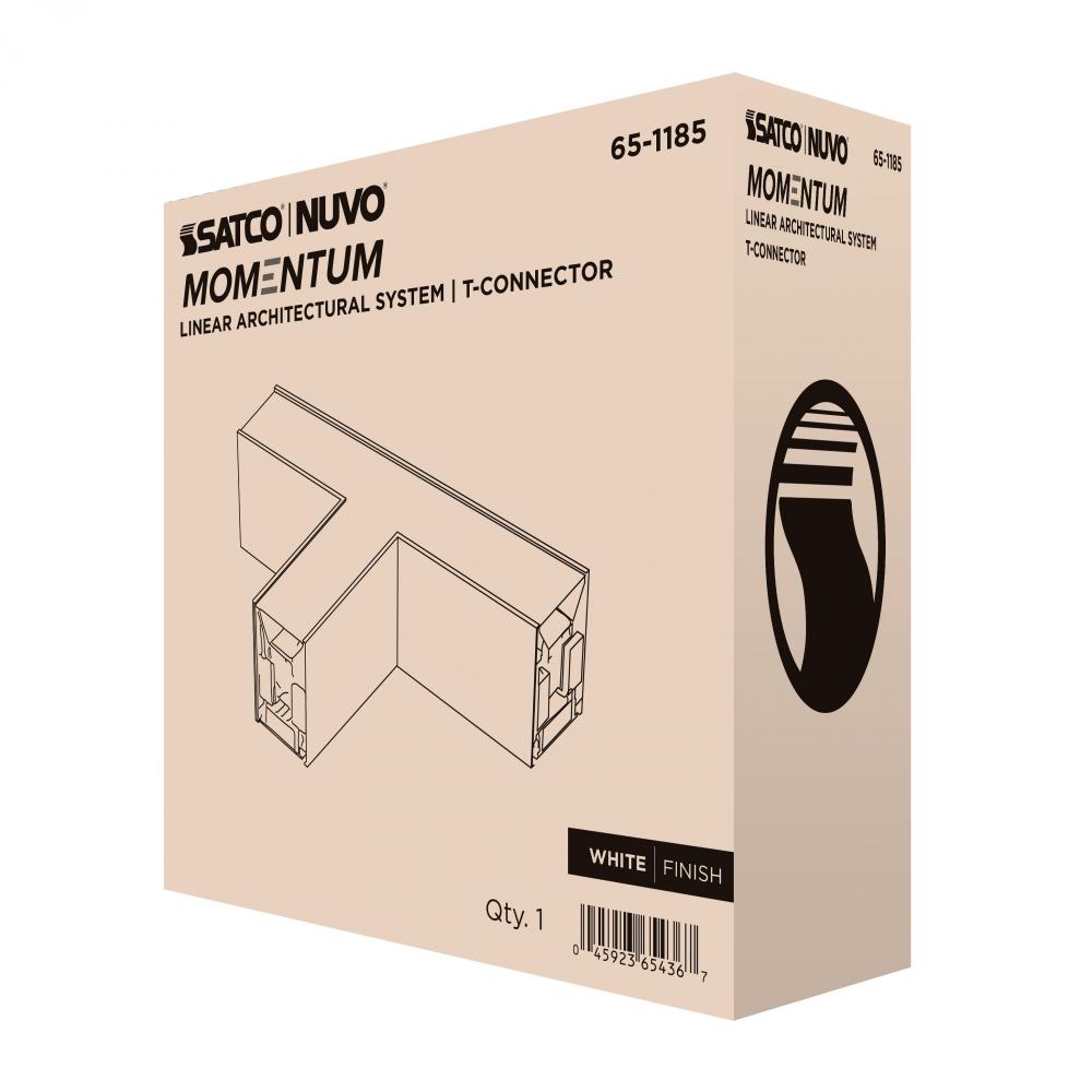SATCO's 65-1185 T-Connector is available in a white finish. This component is used to create "T" shape junctions within a linear lighting layout and expands design possibilities. It helps maintain the clean lines of the system and is an available connector accessory.