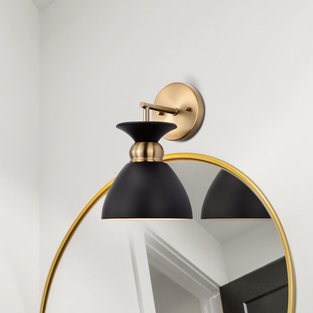 Perkins; 1 Light; Wall Sconce; Matte Black with Burnished Brass