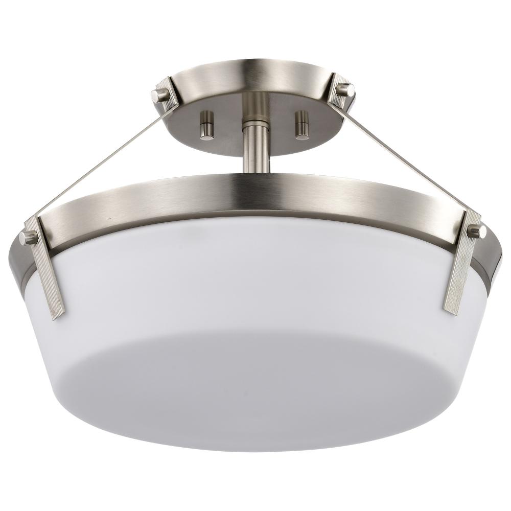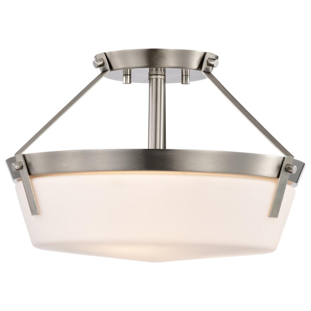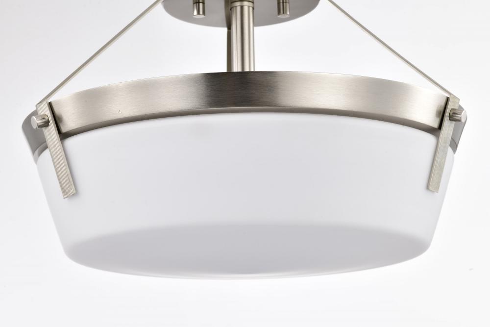 Rowen 3 Light Semi Flush; Brushed Nickel Finish; Etched White Glass