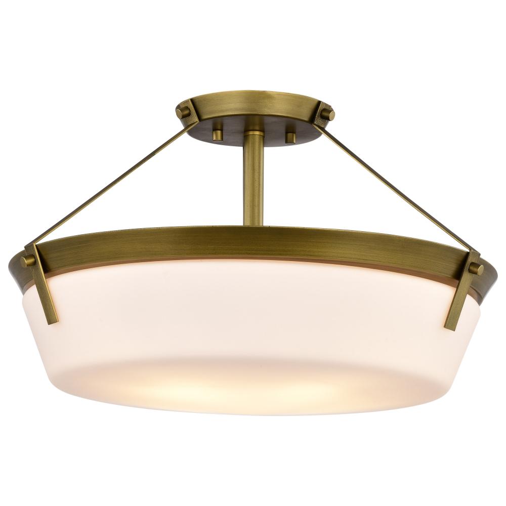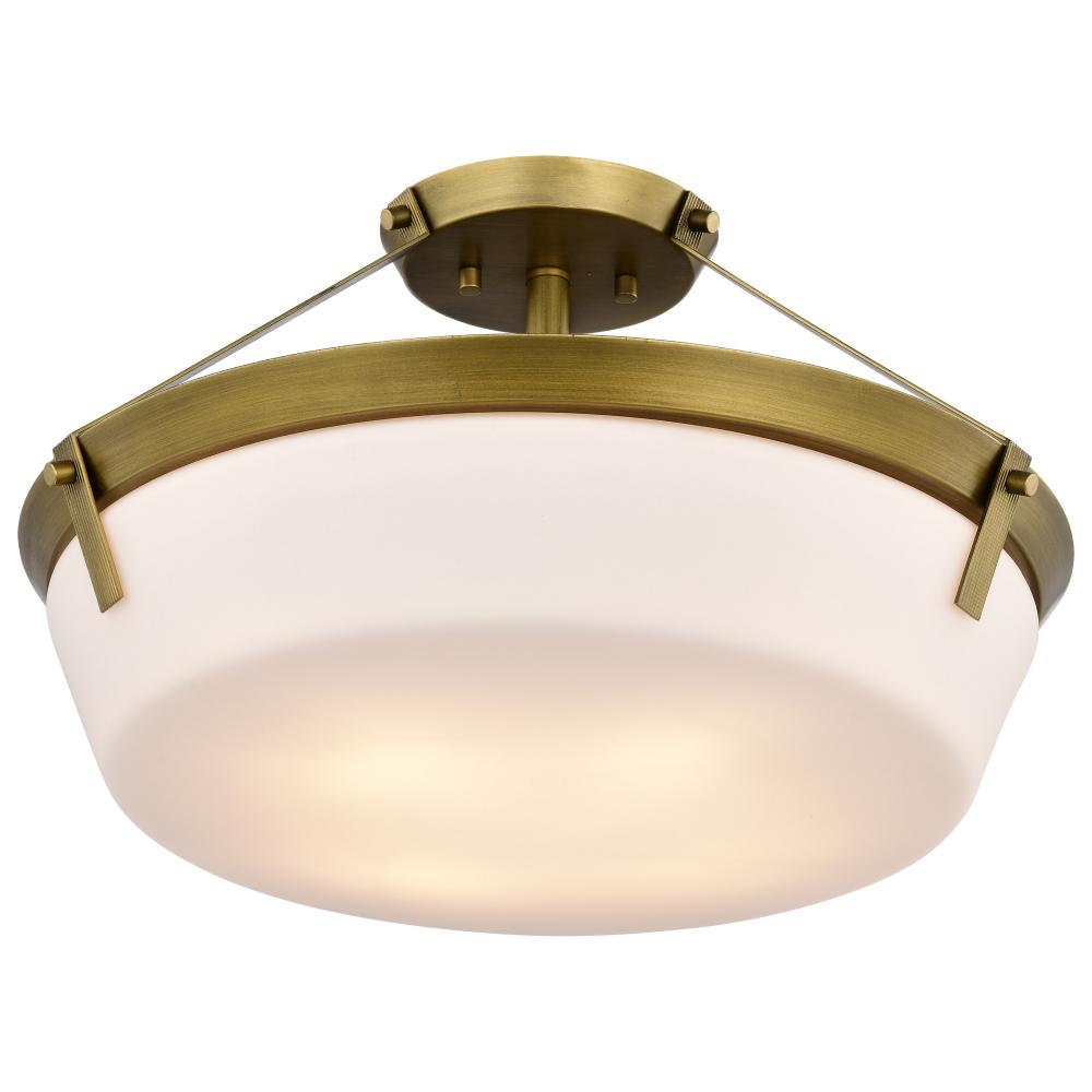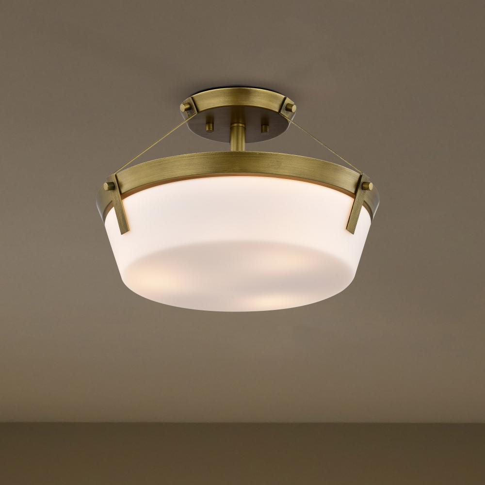 The Rowen 60-7752 semi-flush mount is a versatile lighting fixture that exudes elegance and sophistication. The natural brass finish gives the fixture a warm and inviting look, while the etched white glass diffuses the light to create a soft and ambient gl