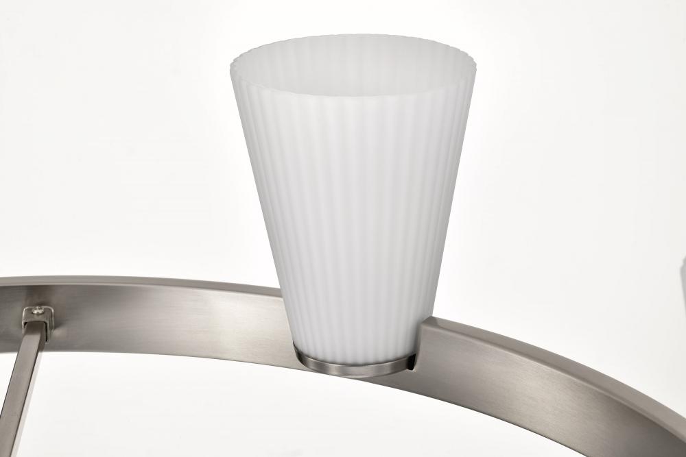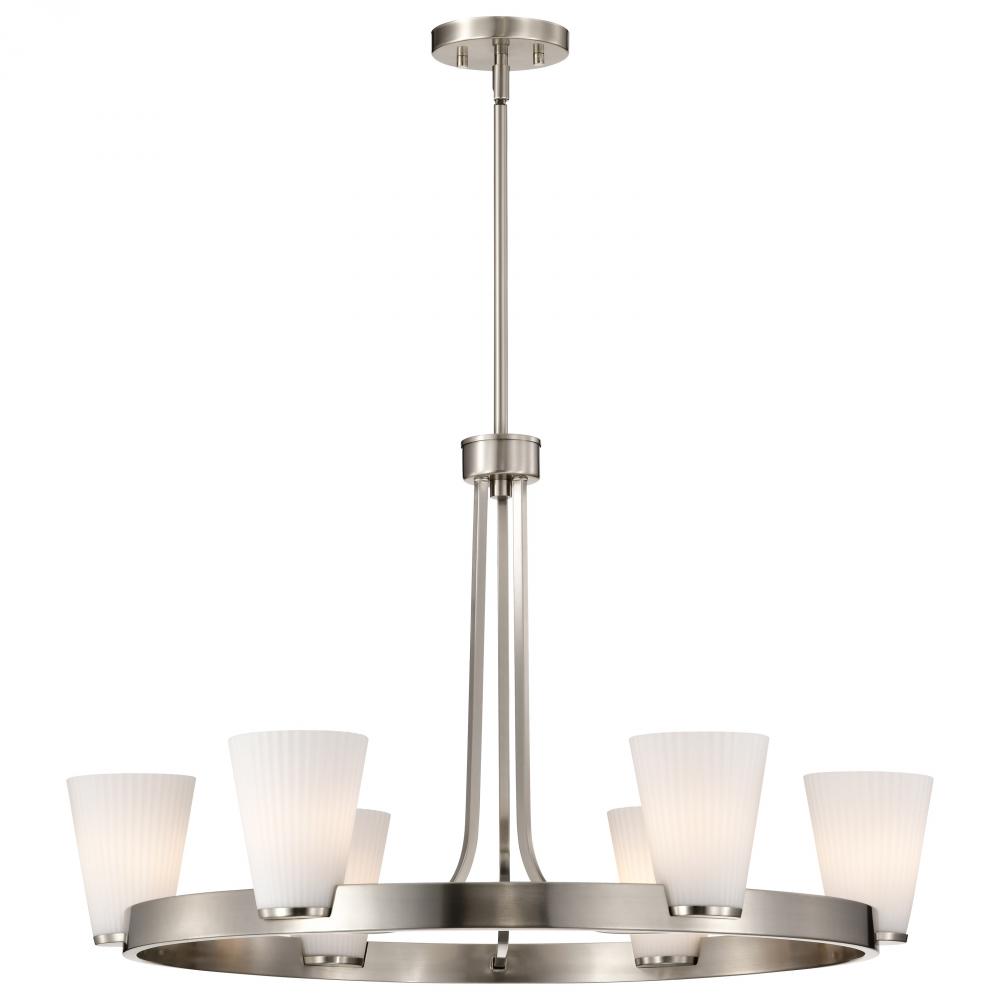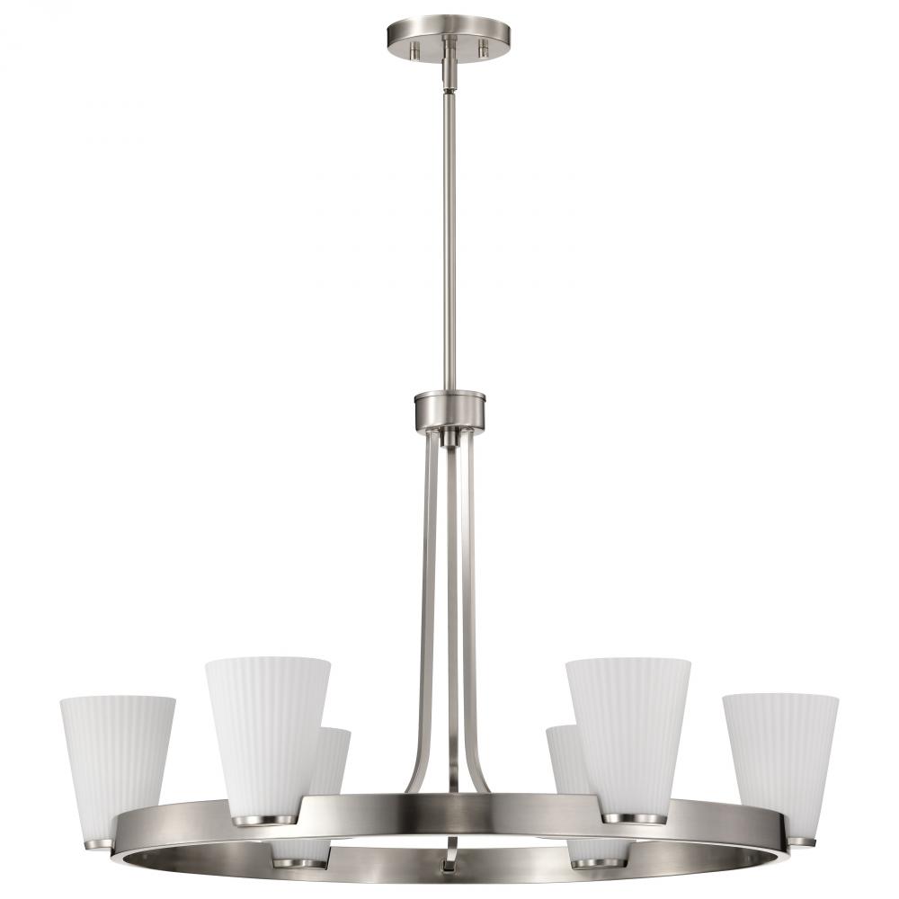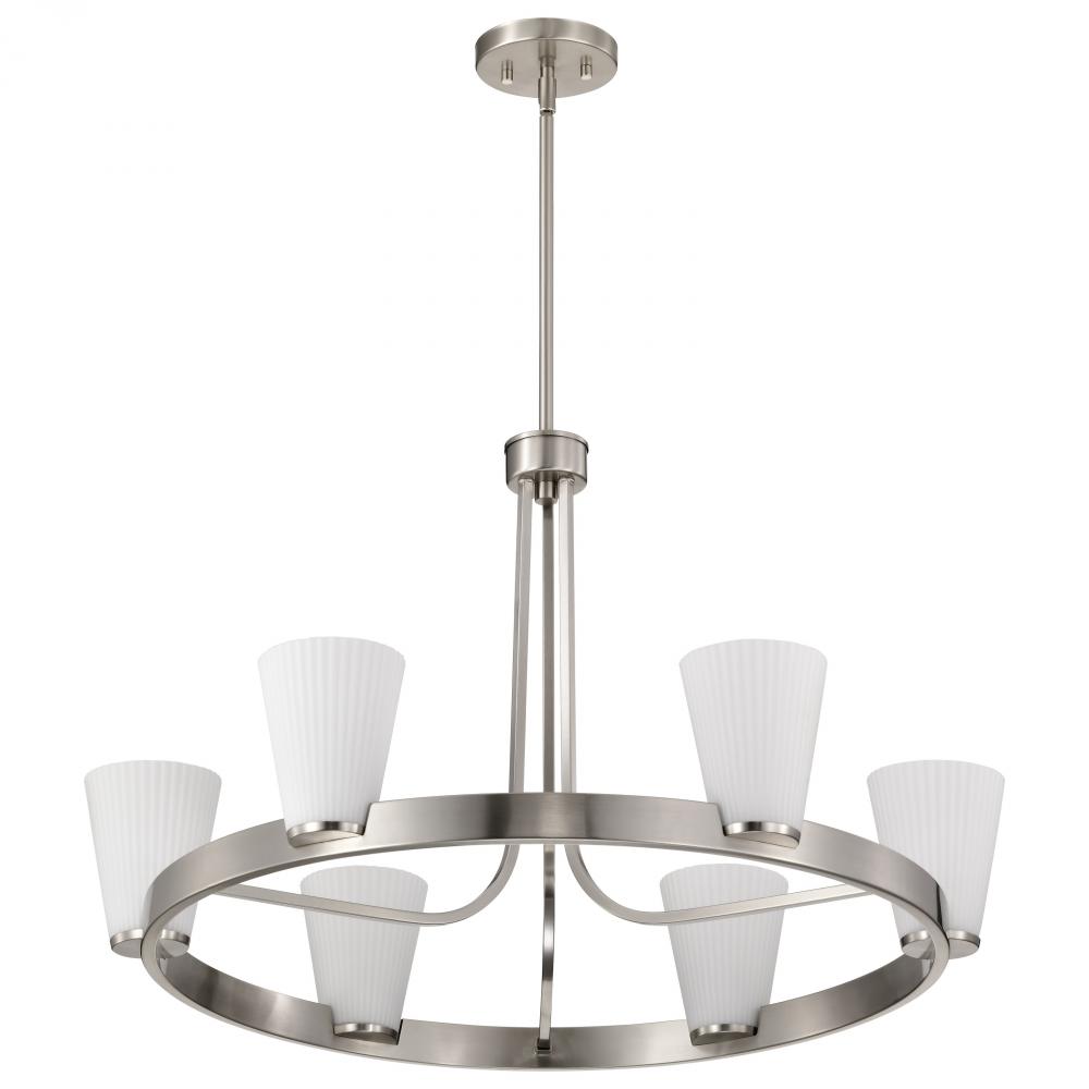 Royale; 6 Light Chandelier; Brushed Nickel Finish; Ribbed White Glass