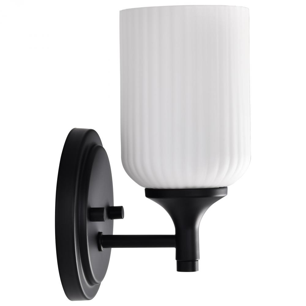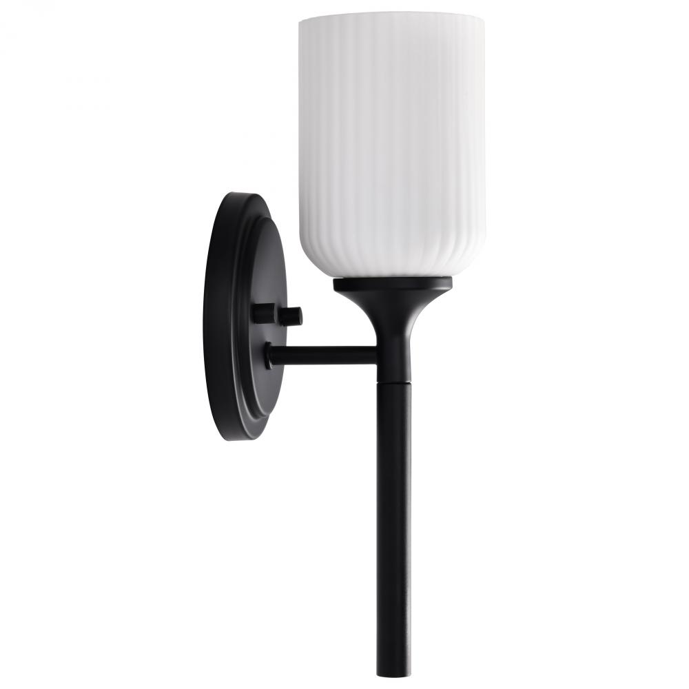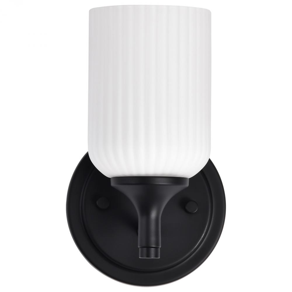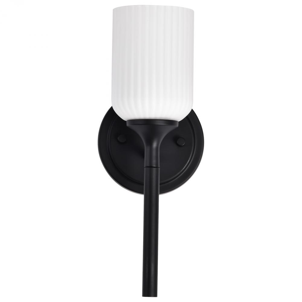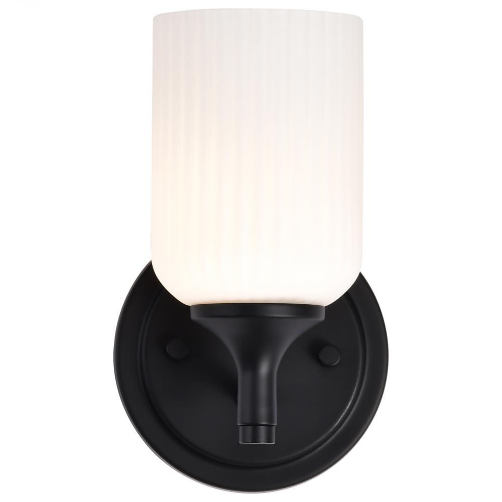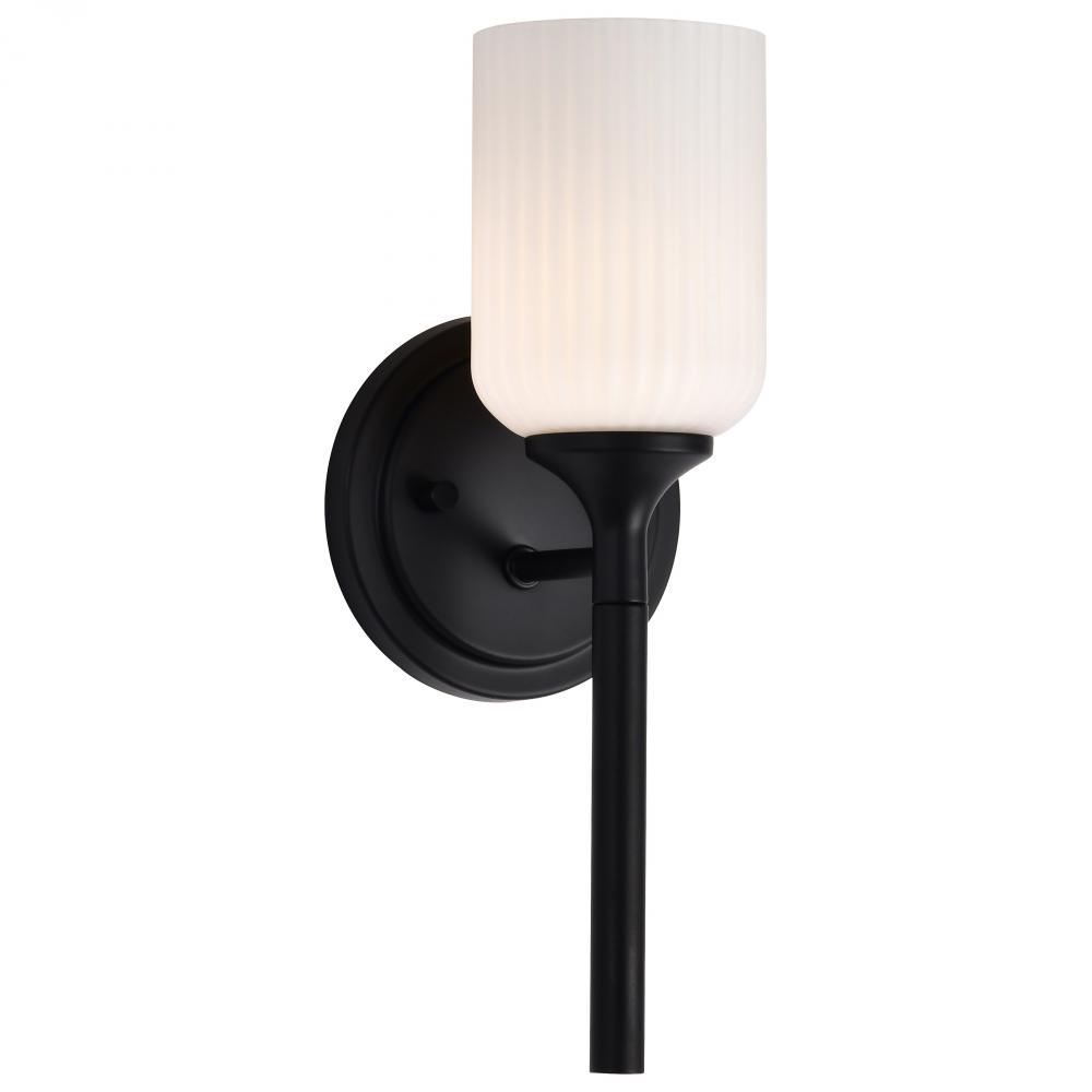 Solara; 1 Light Wall Sconce; Matte Black Finish; Frosted Ribbed Glass