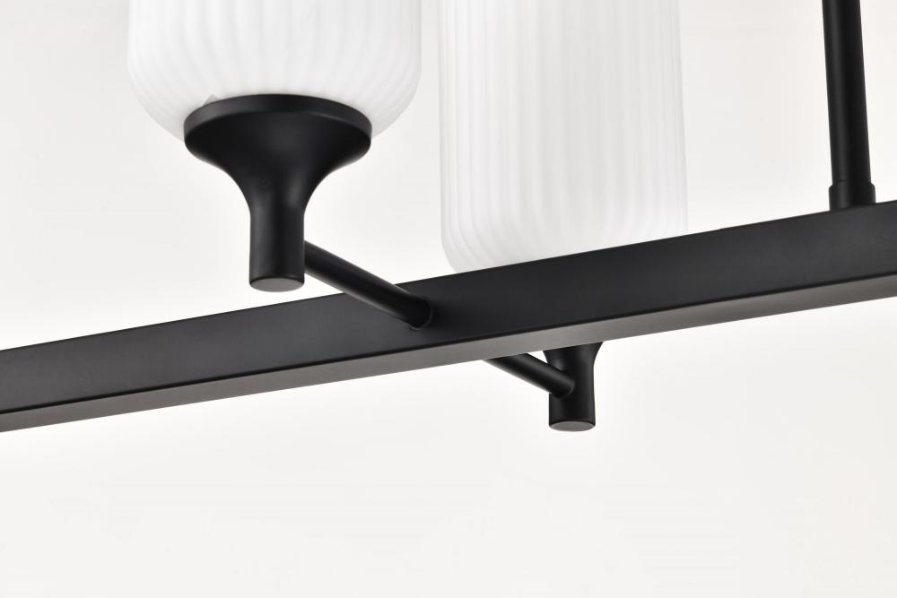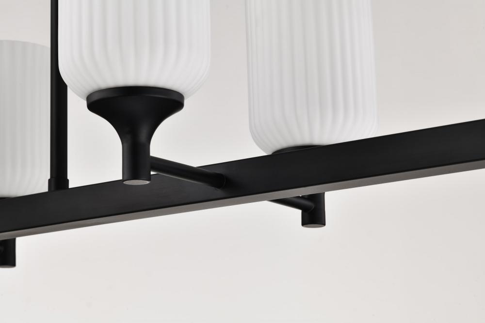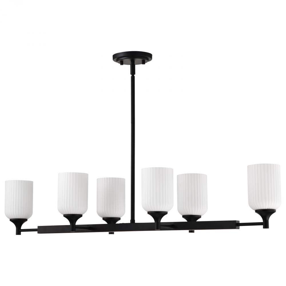Solara; 6 Light Island Pendant; Matte Black Finish; Frosted Ribbed Glass