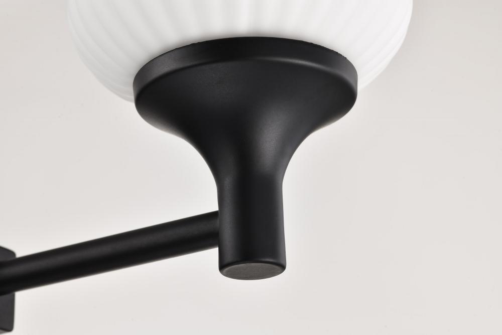 Finished in Matte Black with Frosted Ribbed Glass