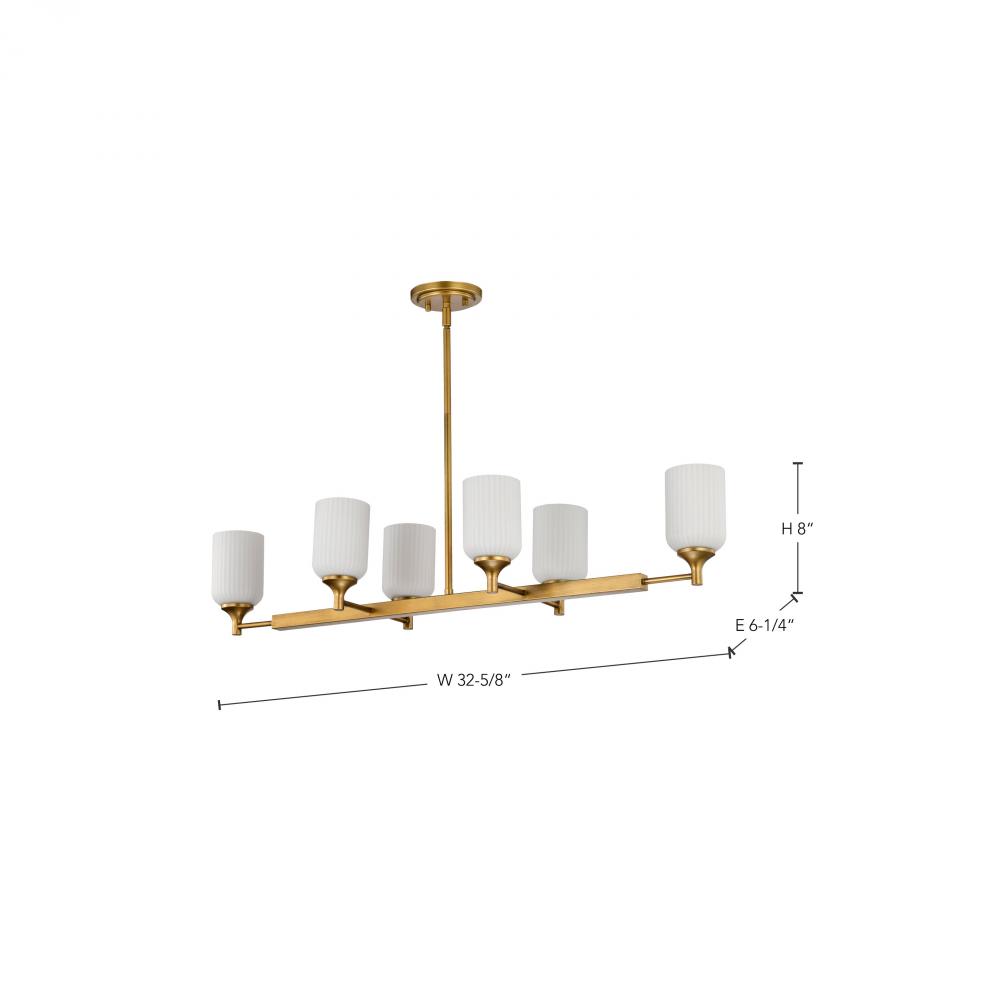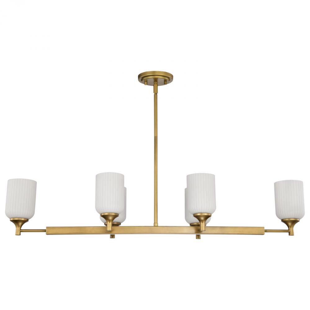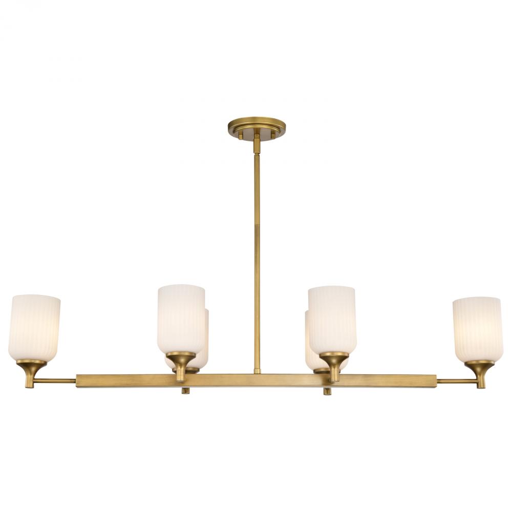 Solara; 6 Light Island Pendant; Natural Brass Finish; Frosted Ribbed Glass