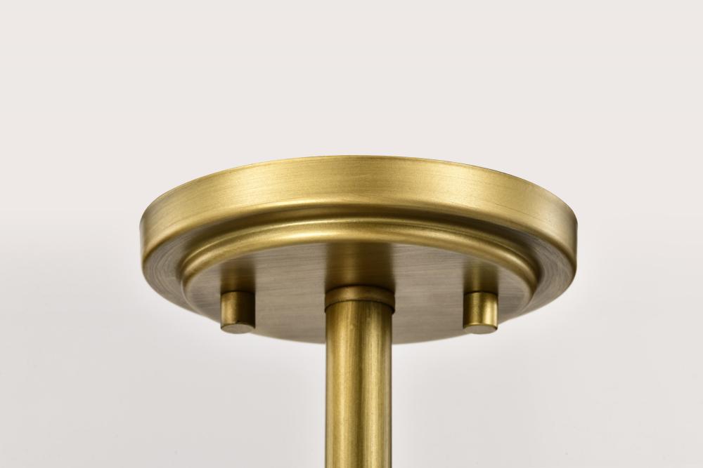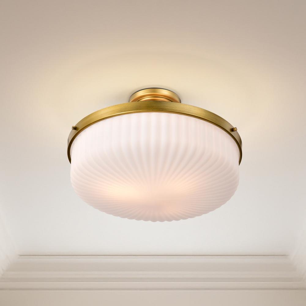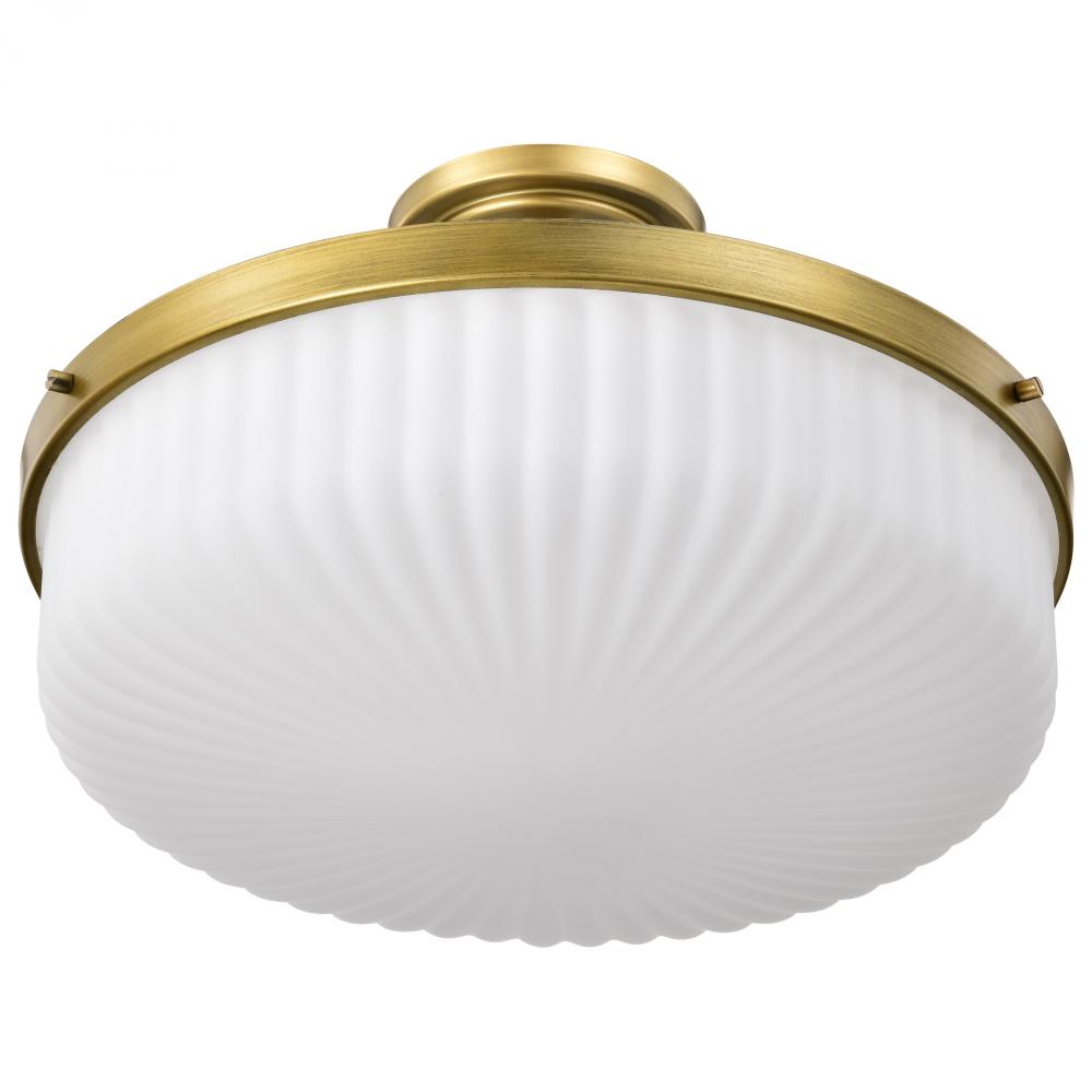 Solara; Semi Flush Mount; Natural Brass Finish; Frosted Ribbed Glass
