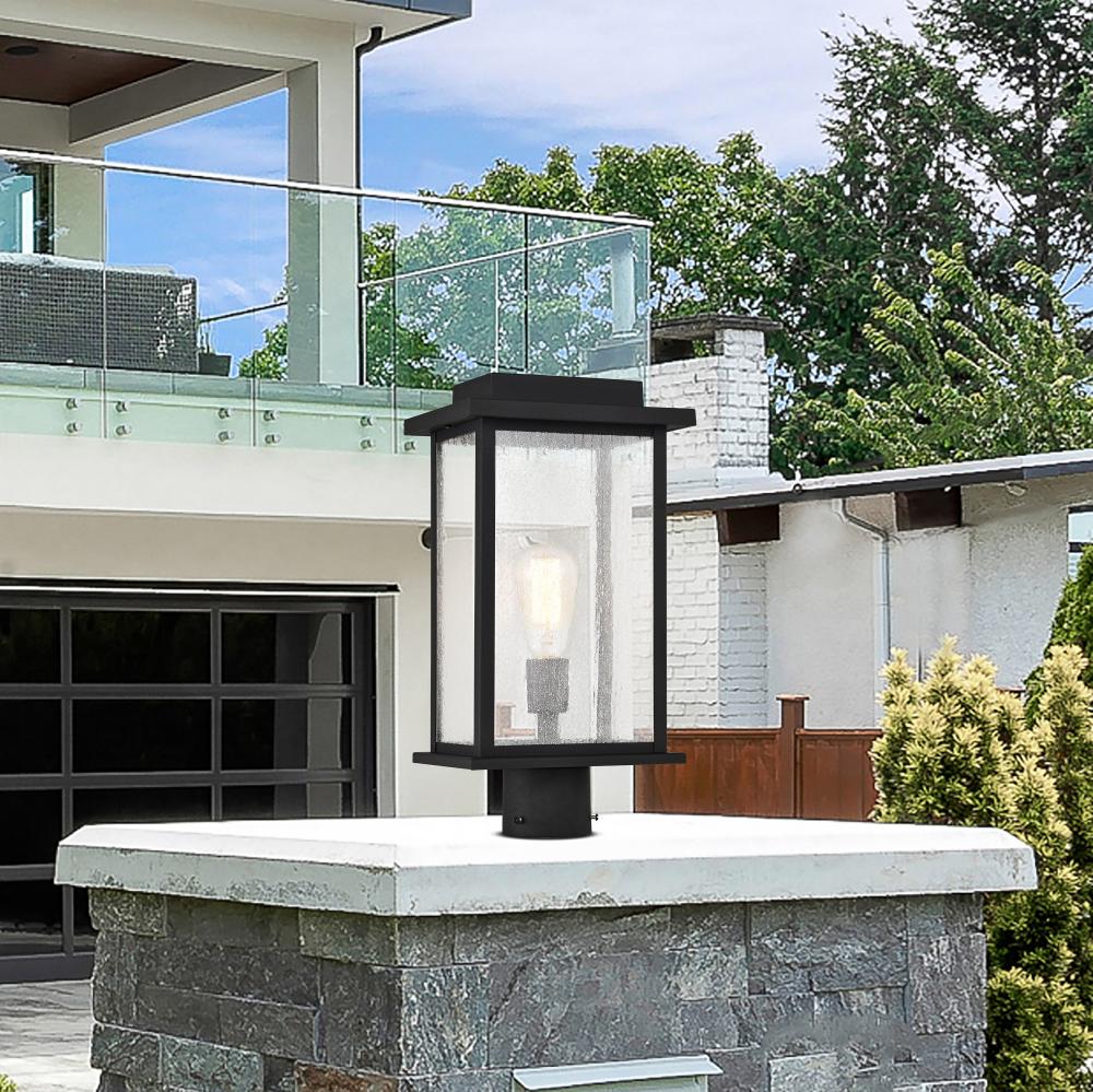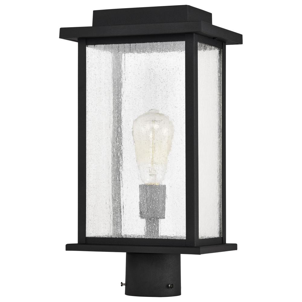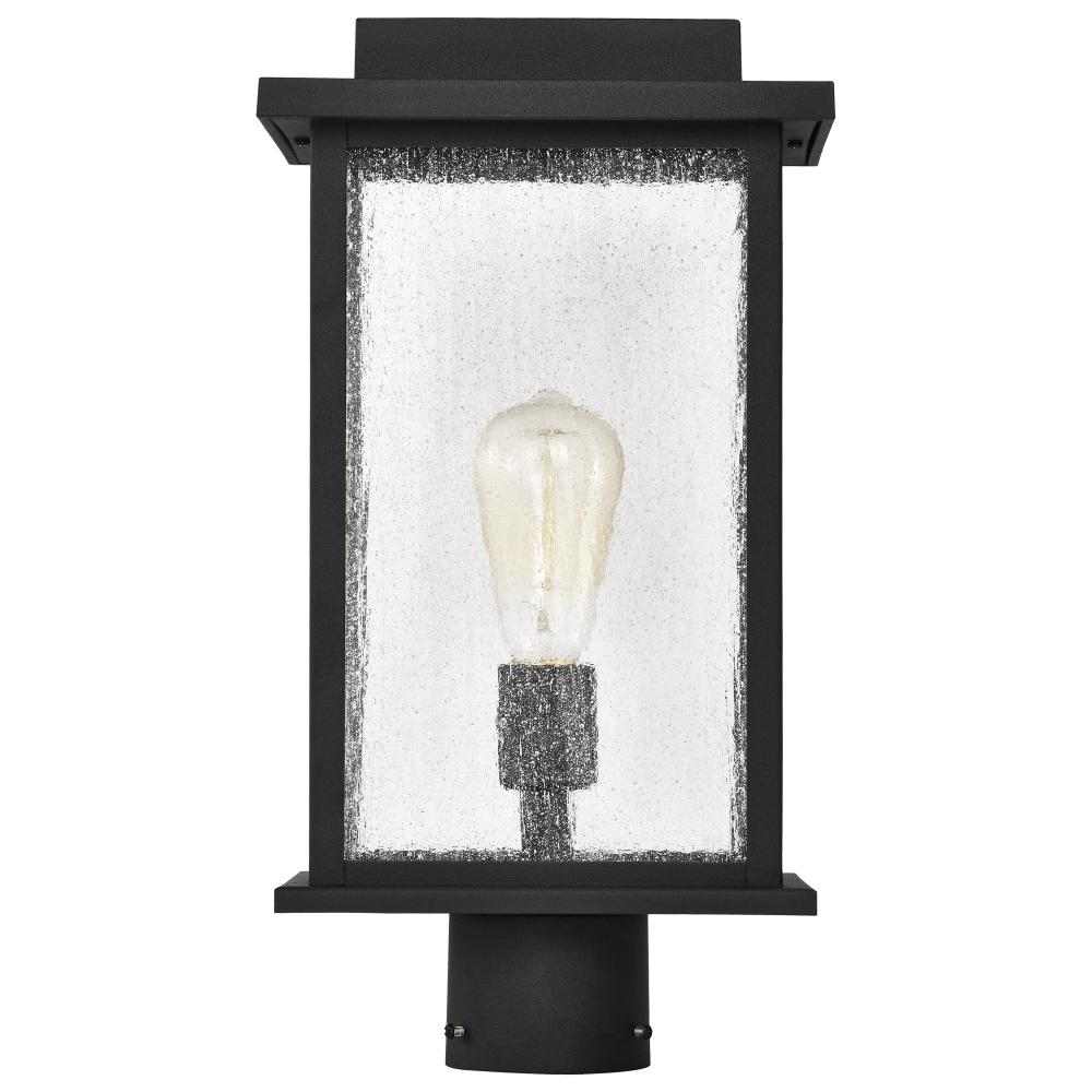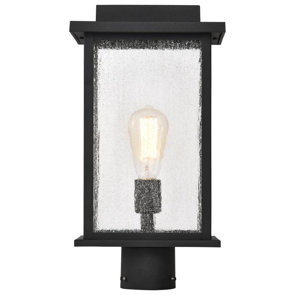 Sullivan Collection Outdoor 17 inch Post Light Pole Lantern; Matte Black Finish with Clear Seeded Glass