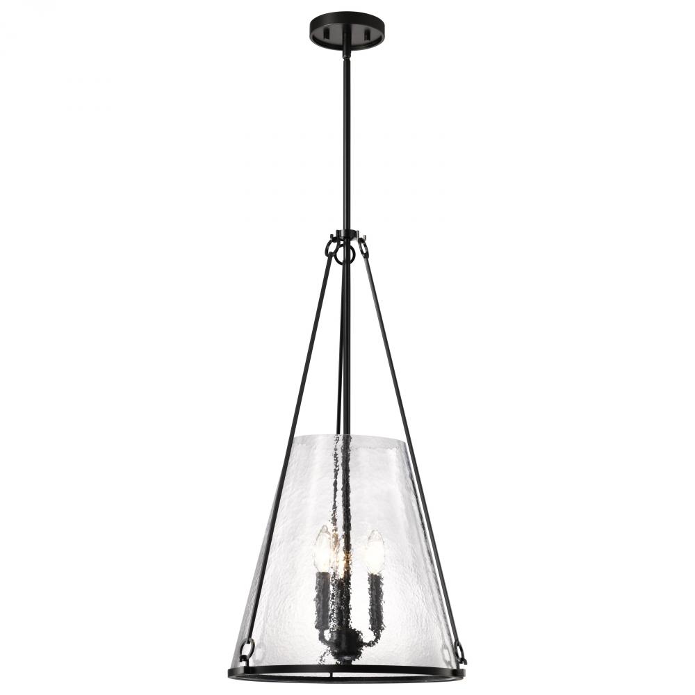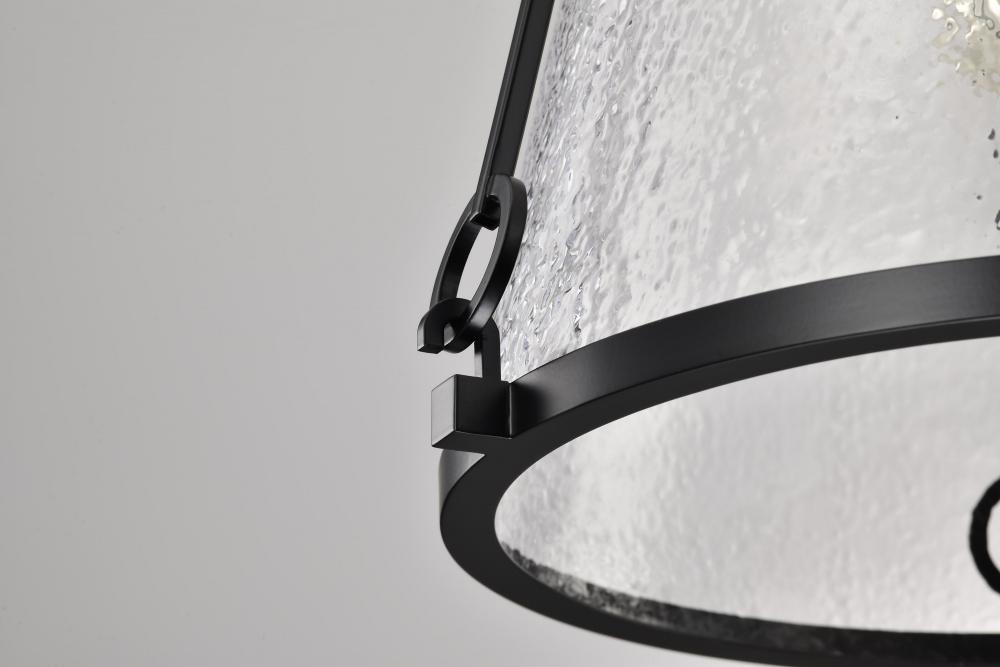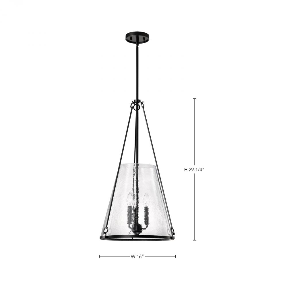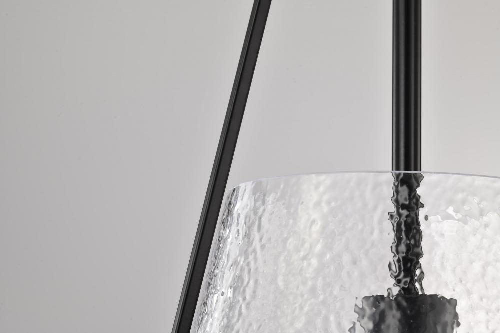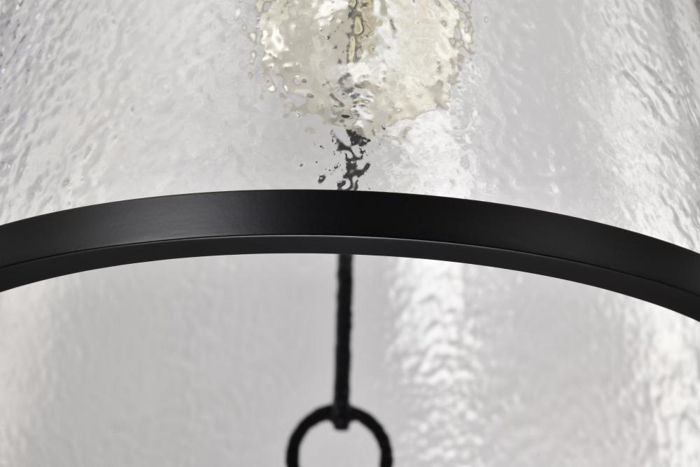 Valentine; Large Pendant; Black Finish; Hammered Glass