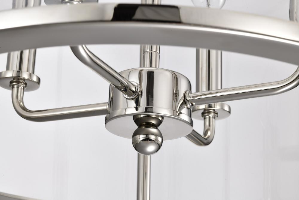 Maintaining a contemporary aesthetic, the Yorktown 60-7956 four light large pendant embodies a traditional design approach that is free and airy. Incorporating a simple frame finished in polished nickel draws your eye to the clean lines and simplicity, wit
