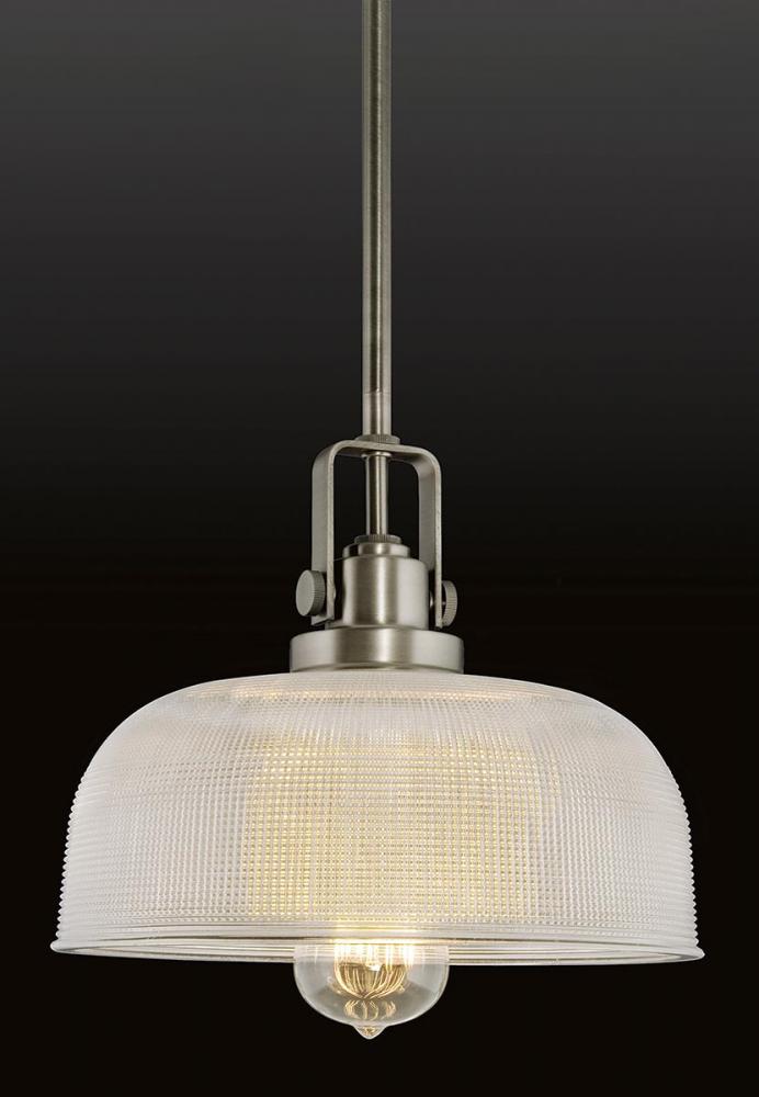 The Archie Collection brings a vintage, industrial flair to interior settings. The collection’s distinctive double prismatic glass adds visual interest as its crisscross pattern comes to life when illuminated. The distinctive finely crafted strap and knob detail adds authentic industrial flair. This one-light pendant is perfect for kitchens, dining rooms, rec room and anywhere pendants could be used. Polished Chrome finish.