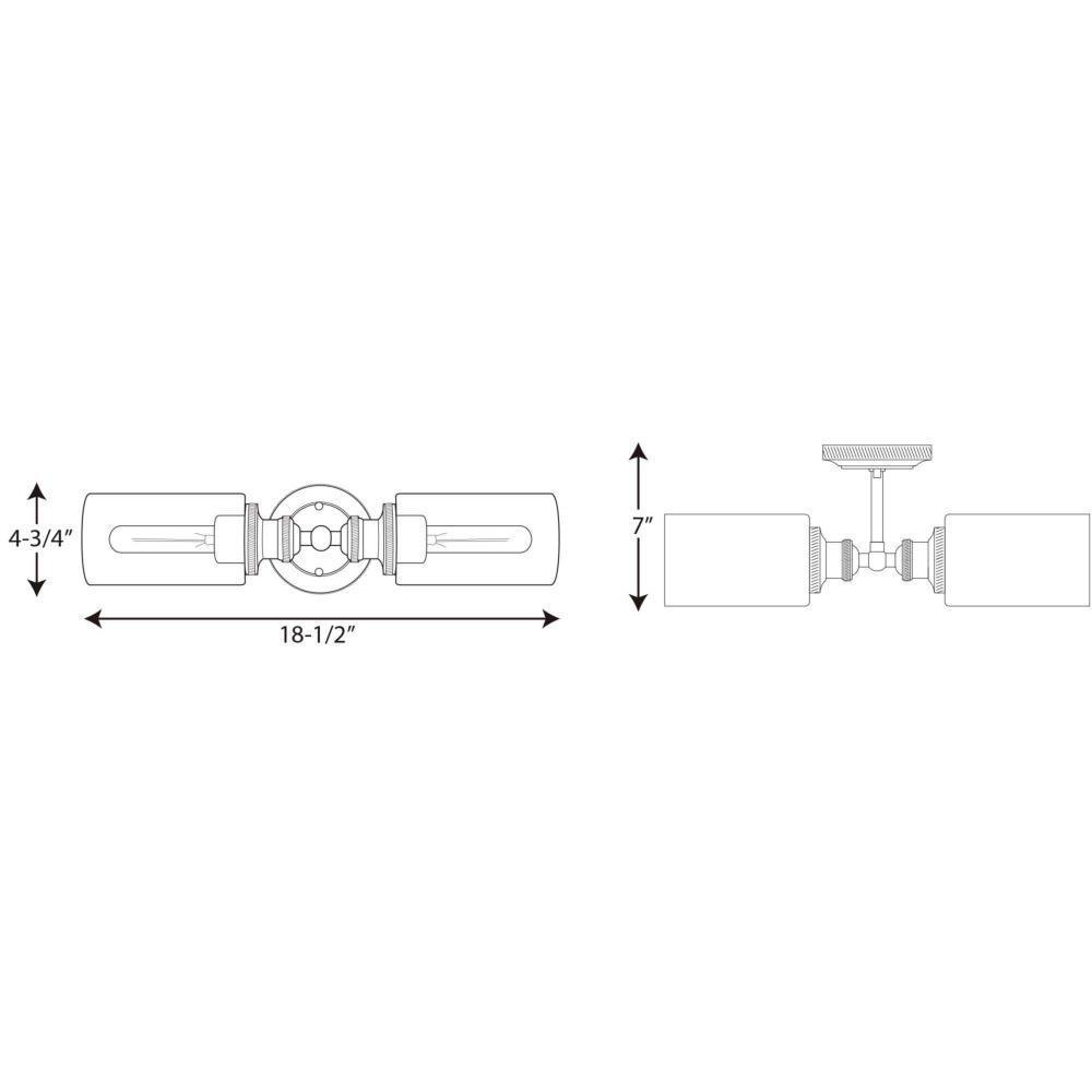 Ideal for a bathroom;Perfect for farmhouse, urban industrial, and vintage electric style settings;Beautiful antique nickel finish with polished chrome accents.;Crisp clear glass shades;Fixture can mount horizontal and vertical;Use 2 medium base bulbs that