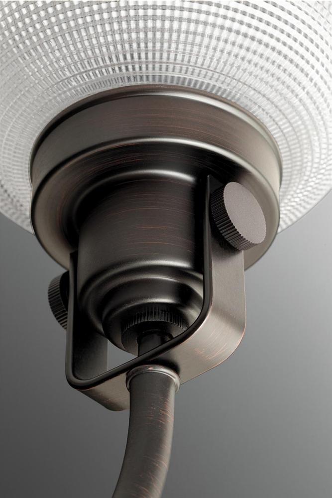 The four-light bath & vanity from the Arden collection offers a comfortable silhouette that is both rustic and modern. A substantial arm suspends etched glass. This transitional style fixture is finished in Antique Bronze.