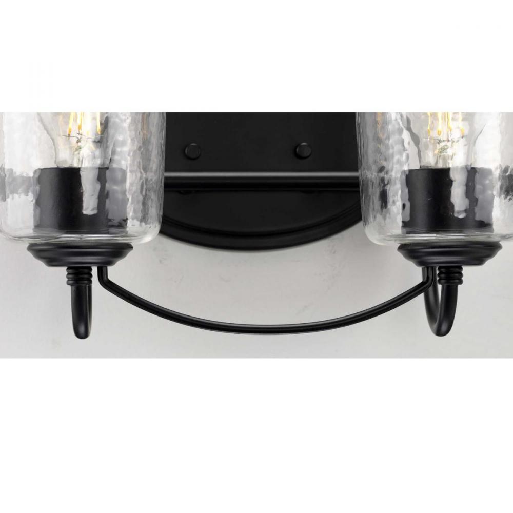 Bowman Collection Two-Light Matte Black Clear Chiseled Glass Coastal Bath Vanity Light