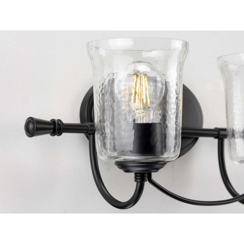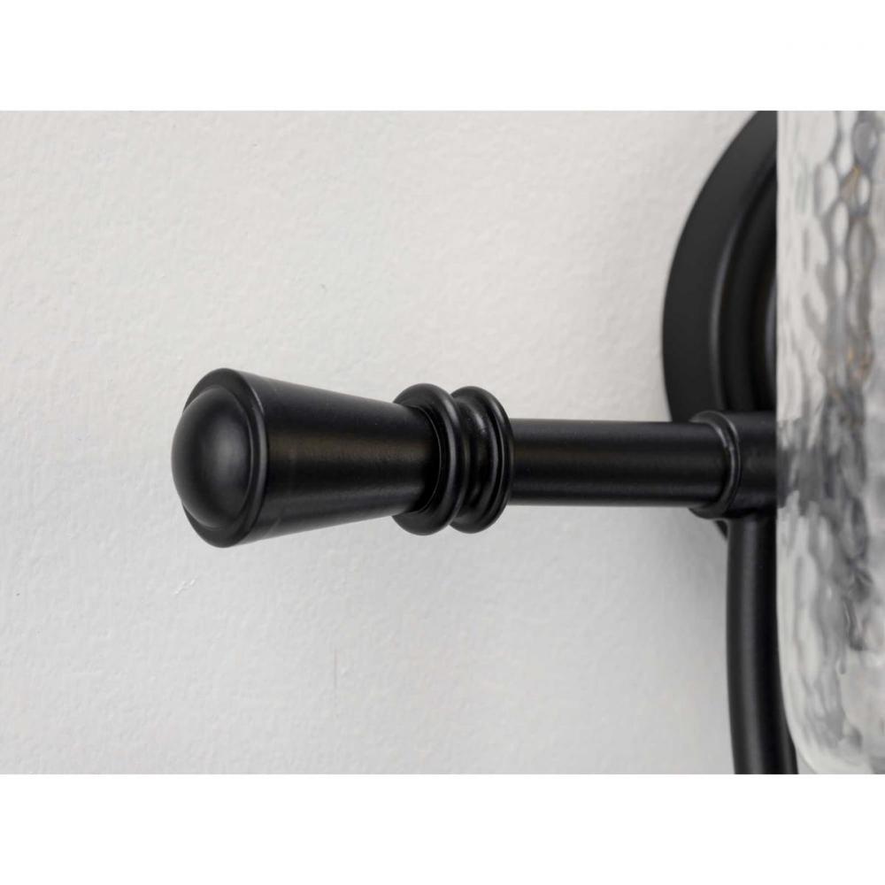 Ideal for a bathroom and powder room.;Perfect for coastal, farmhouse, rustic, and transitional style settings;Classic matte black finish;Elegant clear chiseled glass shades;Mount the light fixture facing up or down;Use 2 medium base bulbs that are sold sep
