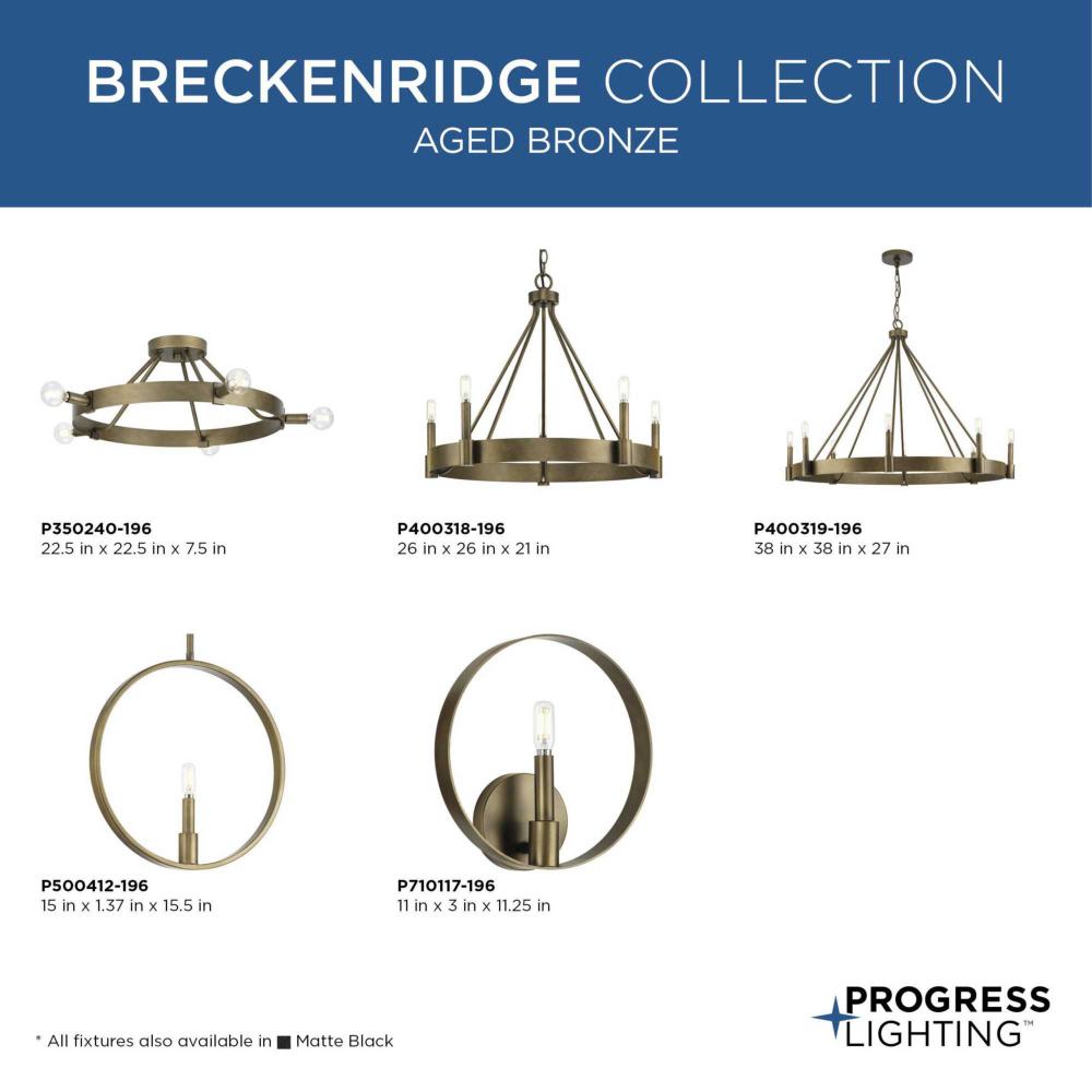 Enhance your interiors with Breckenridge, a rustic yet refined design that presents a statement of minimalist style. A stately candle accents a vast circular frame, illuminating kitchens, bedrooms and bars with an inviting glow. Breckenridge is an elegant addition to modern farmhouse and modern craftsman settings. This fixture is part of the Progress Lighting Design Series, a lighting collection offering fashionable styles and affordable luxury lighting for the home.