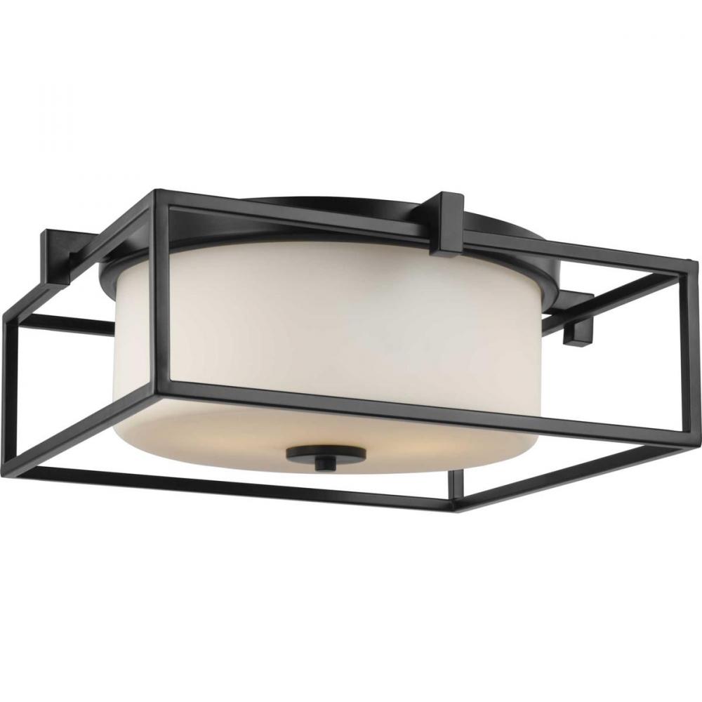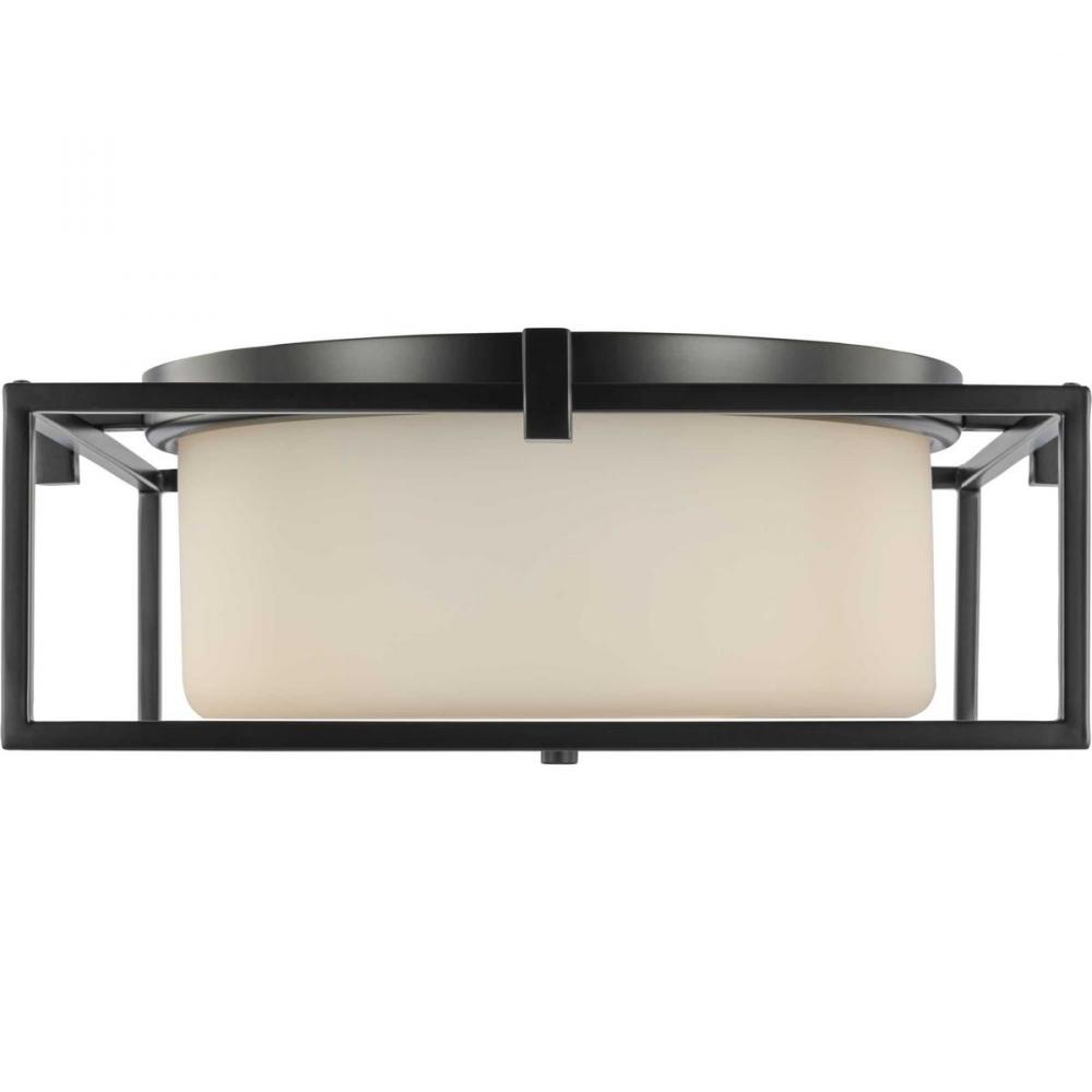Stick With Simple Geometric Forms And Clean Crisp Lines With This Modern Flush Mount. A Beautiful Opal Glass Shade Visually Calms The Sharp Edges Of The Boxy Frame In A Masterful Stroke Of Design Excellence. The Frame Is Coated In A Classic Black Finish That Contrasts The Light Shade. The Light Fixture Is Just Right For Spaces In Need Of A Subtle, Feminine Touch.