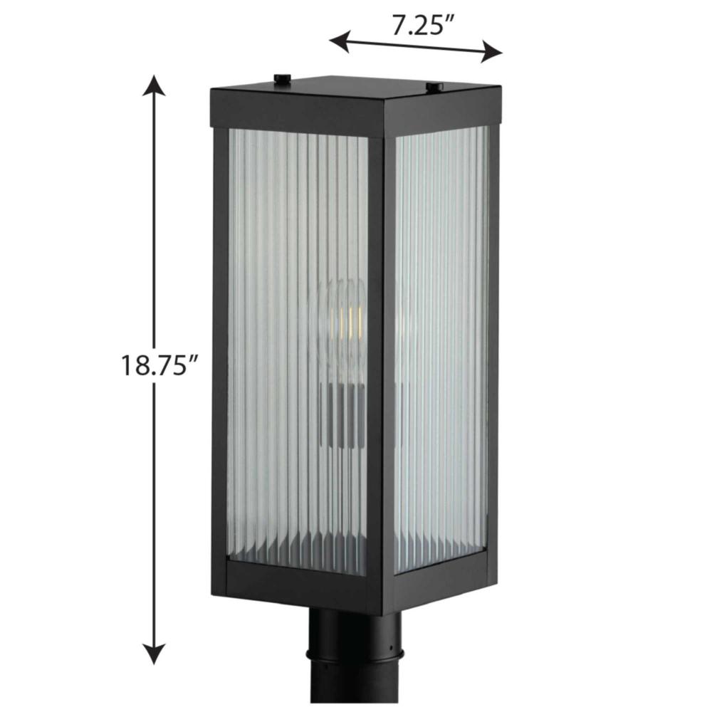 Achieve the stylish and peaceful home environment you've been waiting for with this beautiful post lantern. The rectangular matte black frame's intelligent design is just right for illuminating any outdoor space in need of illumination. The frame holds elongated, rippled glass panels through which a warm, guiding glow will shine.