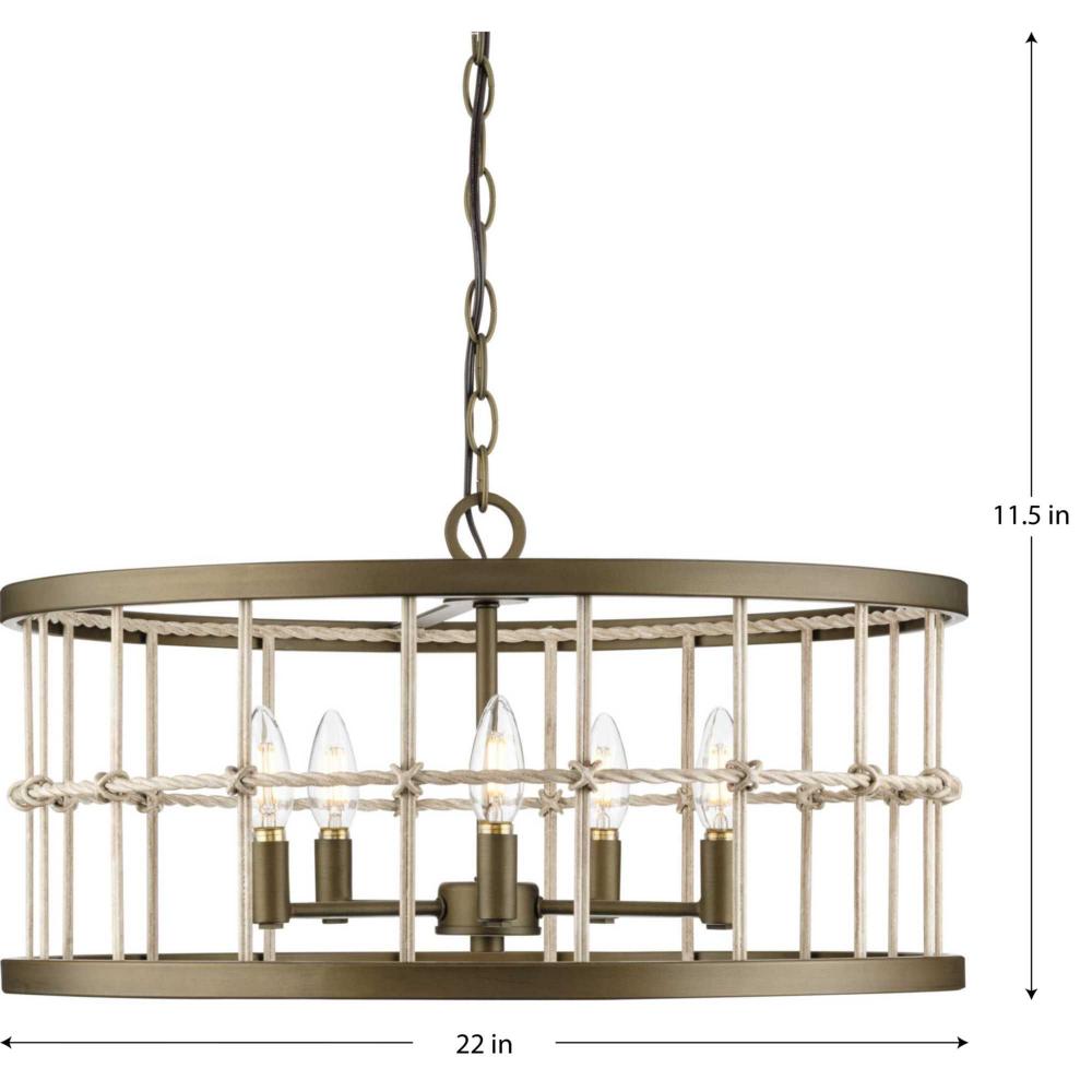 Lattimore Collection Five-Light Aged Brass Coastal Chandelier