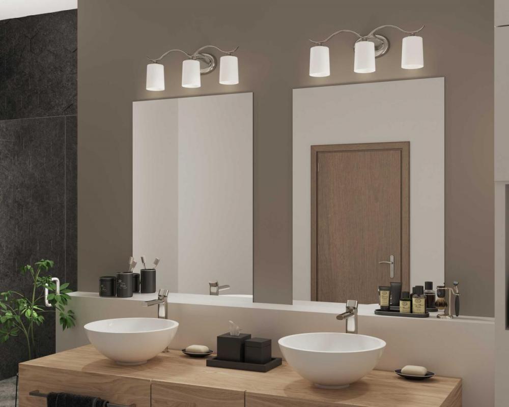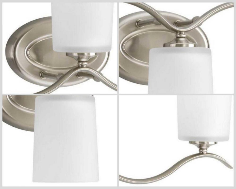 Ideal for a bathroom or great room;Perfect for traditional and transitional style settings;Beautiful brushed nickel finish;Elegant etched glass shades;Mount the light fixture facing up or down;Use 3 medium base bulbs that are sold separately (100 W max - L
