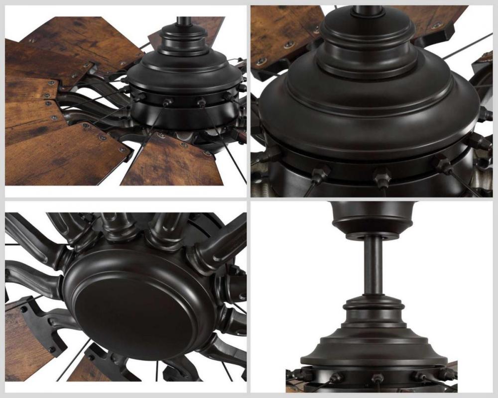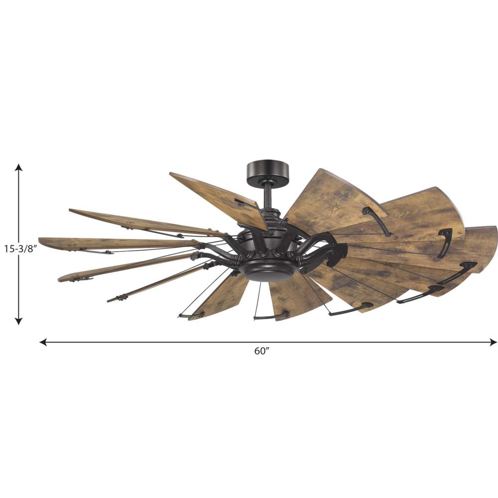 12-blade, 60” statement-making ceiling fan was inspired by the form and function of a windmill;Powerful and quiet DC Motor;Features Distressed Walnut finished blades;Springer ceiling fan with a rich Architectural Bronze finish and Distressed Walnut blade
