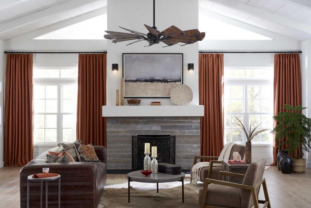 Springer is a statement-making ceiling fan with a rustic flair and a rich Architectural Bronze finish and Distressed Walnut blades. The 12-blade, 60 in ceiling fan was inspired by the form and function of a windmill and is ideal for Farmhouse, Industrial and Transitional interior settings. A full function remote control with batteries is included along with a dual mount canopy that accommodates flat or sloped ceilings.