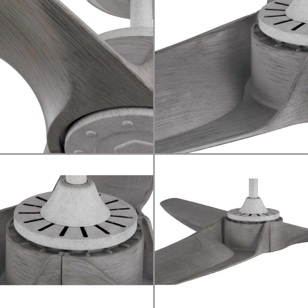 3 cleanly styled blades finished in salt aged cypress extend from a housing coated in a lovely cottage white finish