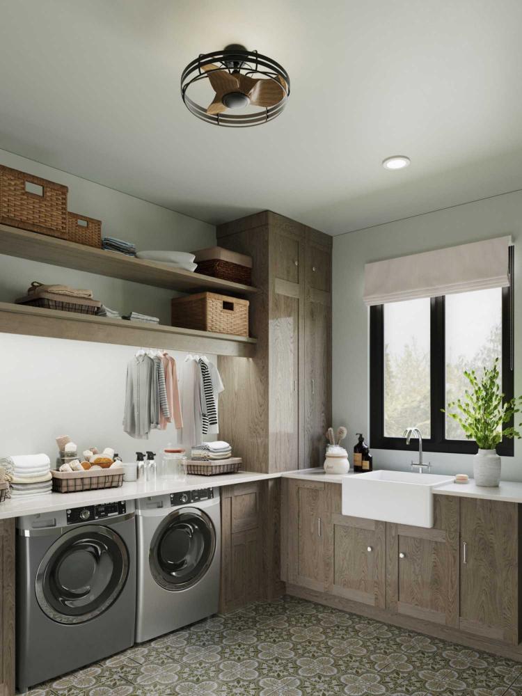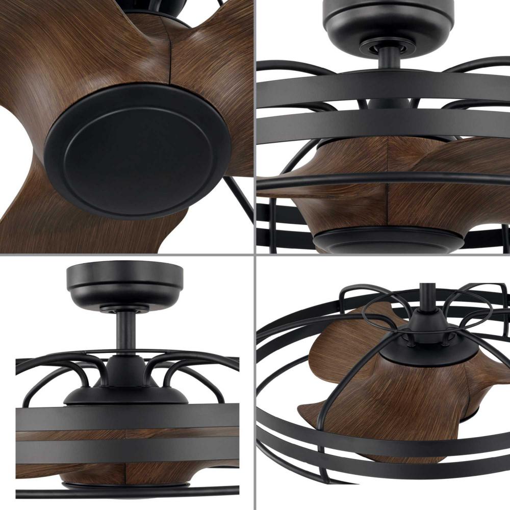 Three curved ABS fan blades for better air movement, blades are hand finished in an Aged Oak with an outer cage finished in Graphite