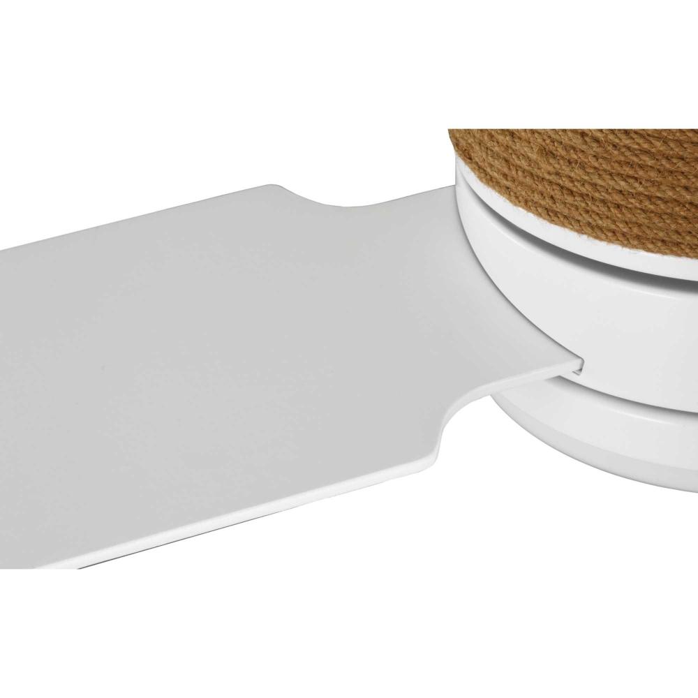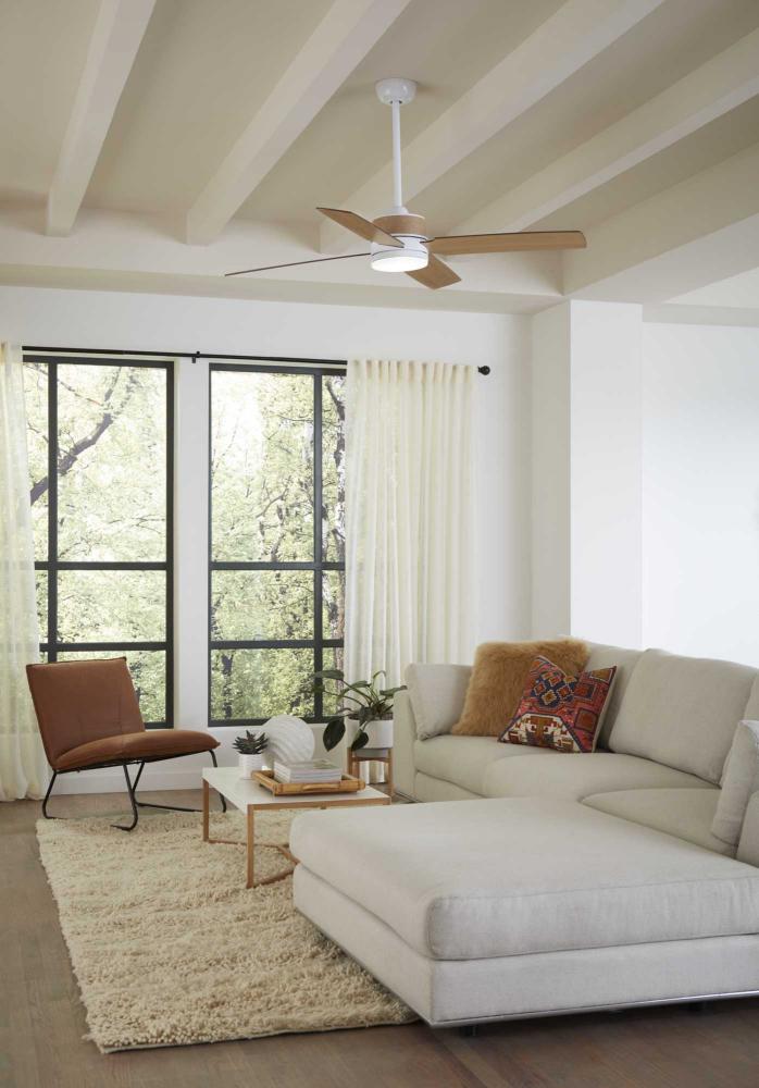 The fan is finished in satin white and accented by an organic jute rope with four revesible blades coated in a gorgeous natural cherry or matte white finishes
