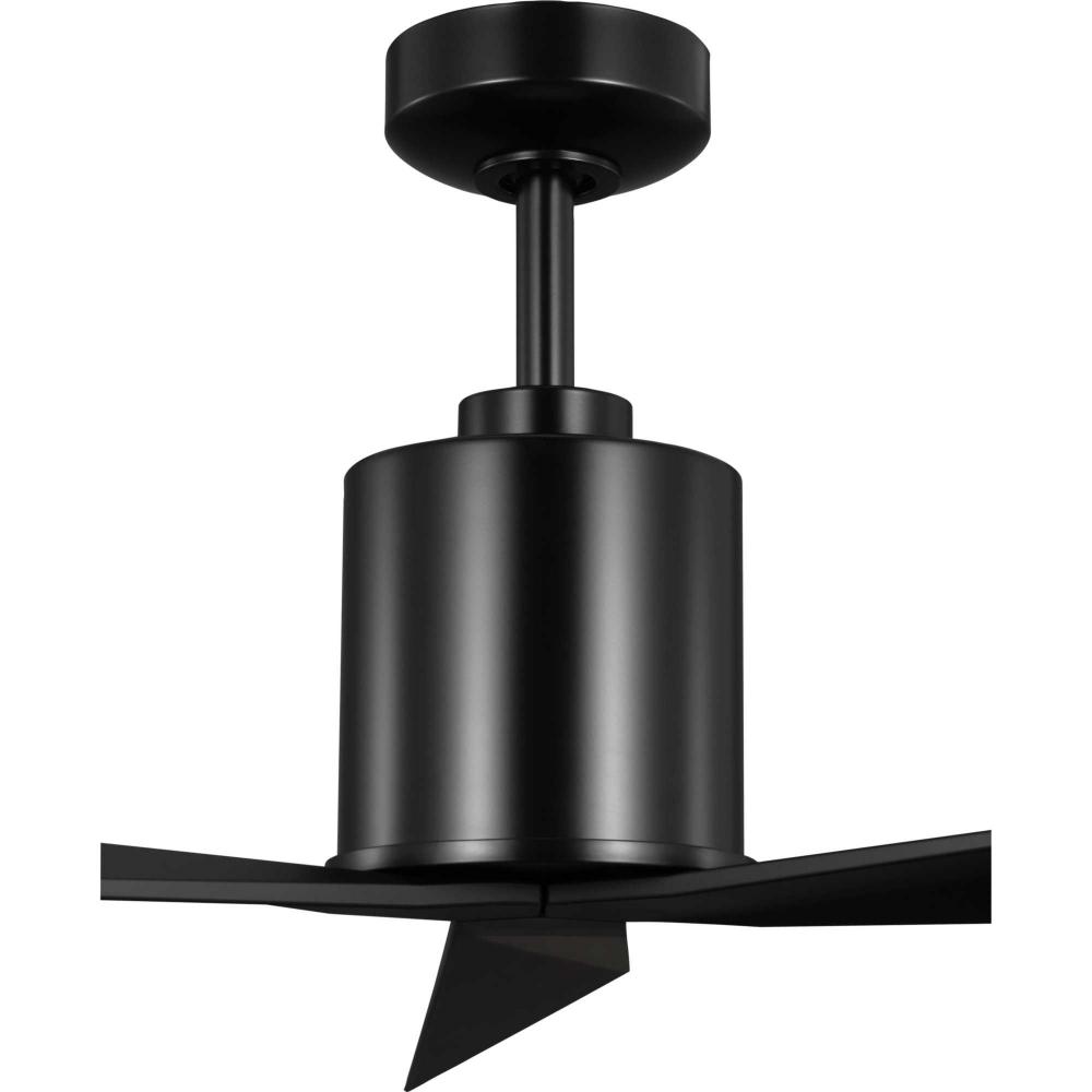 The fan's contemporary, timeless stem holds three sculpted ABS blades