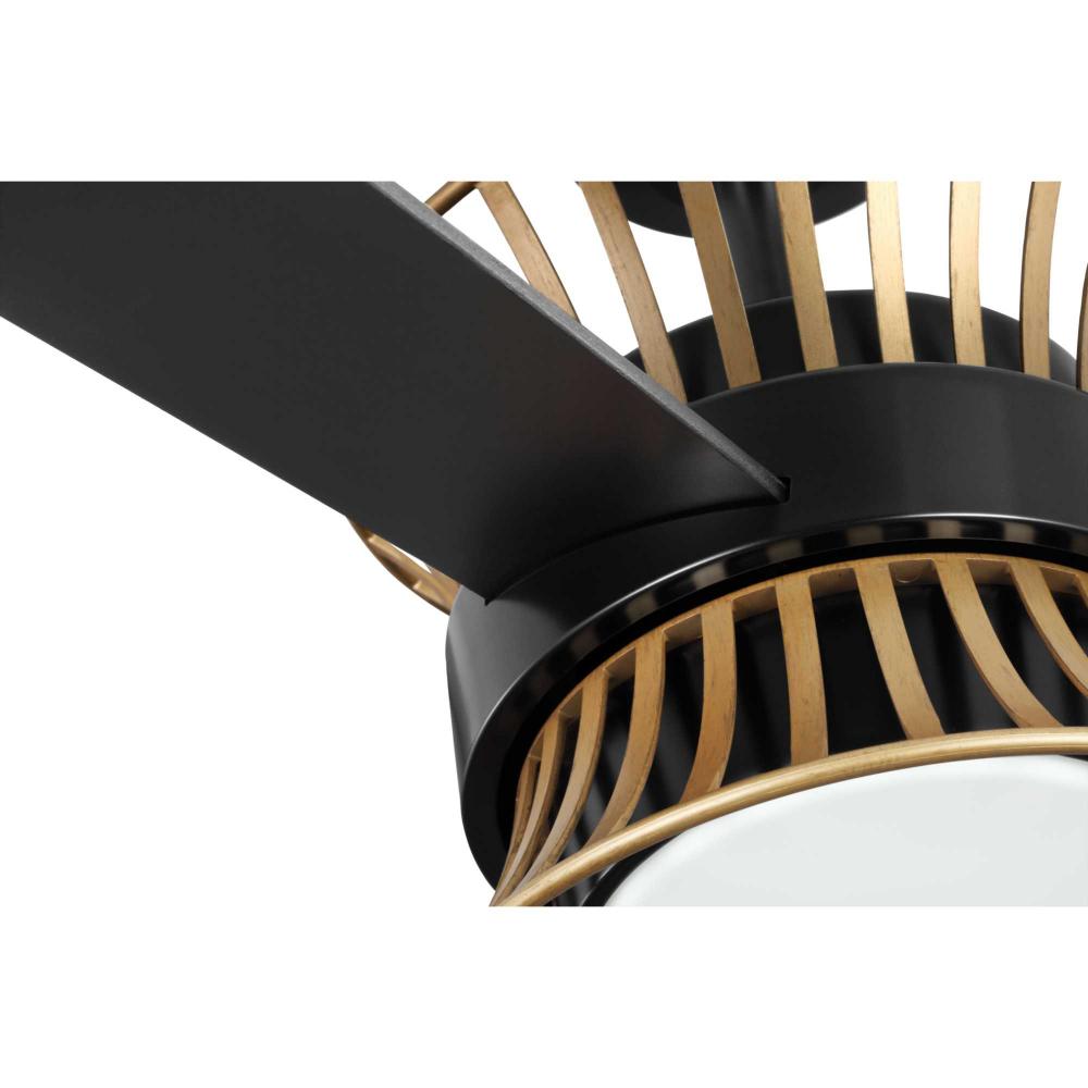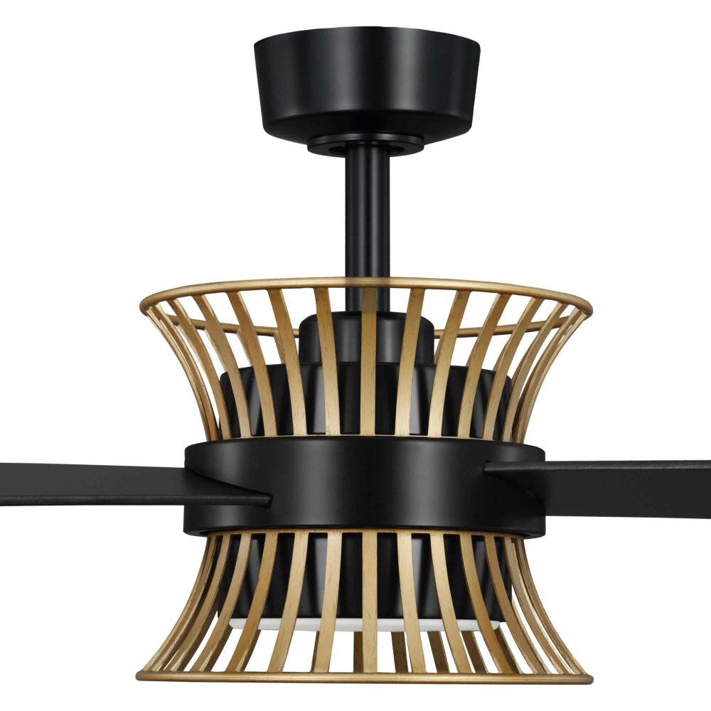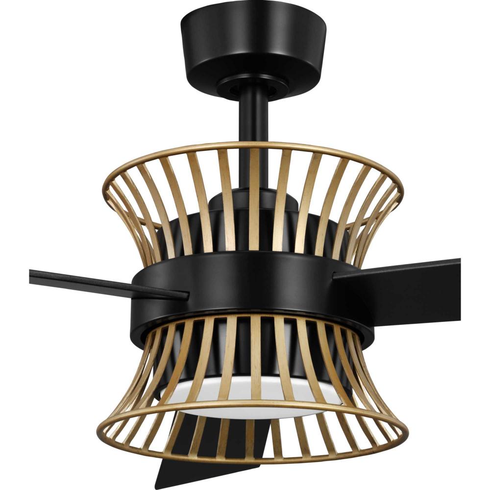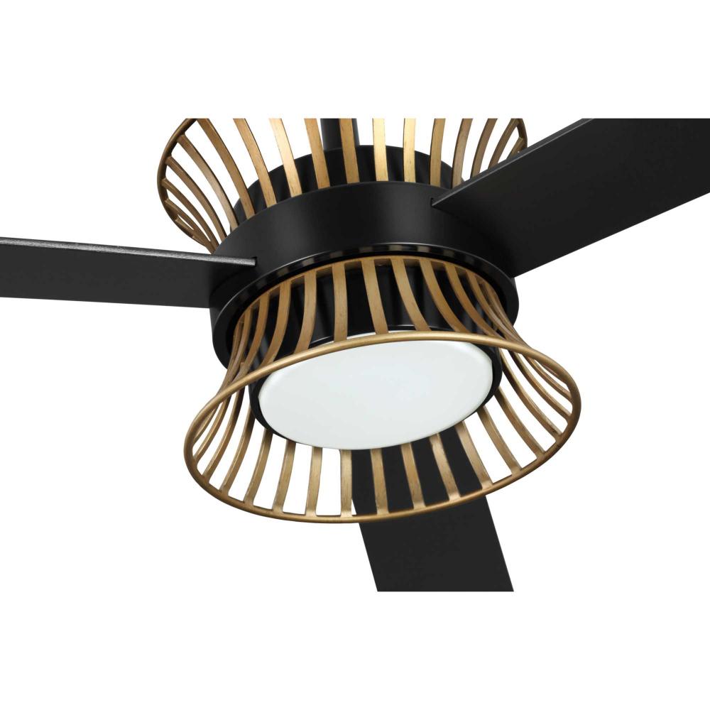 Three blade 55-in matte black ceiling fan with woven cage accent