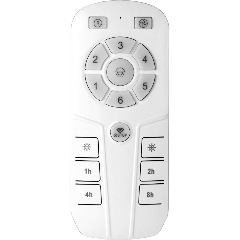 Includes 6 speed handheld remote control with battery and wall bracket.