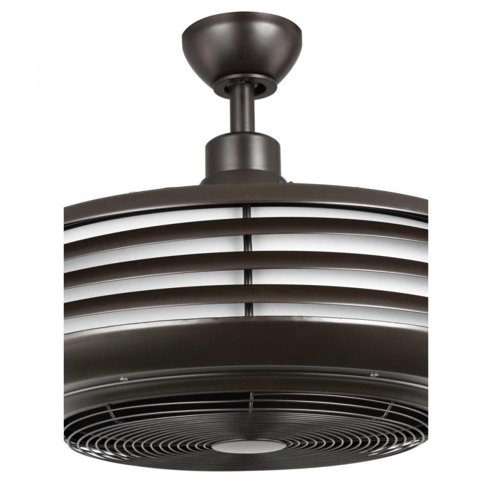 Sanford delivers ultra powerful air movement and energy efficient illumination packaged in a modern design. Ideal for both interior and outdoor settings, this fan adds a contemporary style to porches, foyers, bath and vanity areas providing a wide range of applications. Sanford includes an integrated 23W LED module, offering both form and function with energy and cost-savings benefits. Remote control included. Rich Architectural Bronze finish with metal interior fan blades.