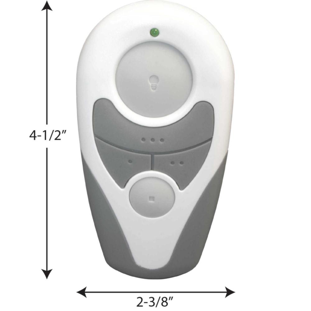 Includes Handheld transmitter;4 – Dip Switches (16 code options);3 speed fan control;Full range light dimmer;Will work with LED lamps and modules;Includes canopy receiver and wall storage bracket