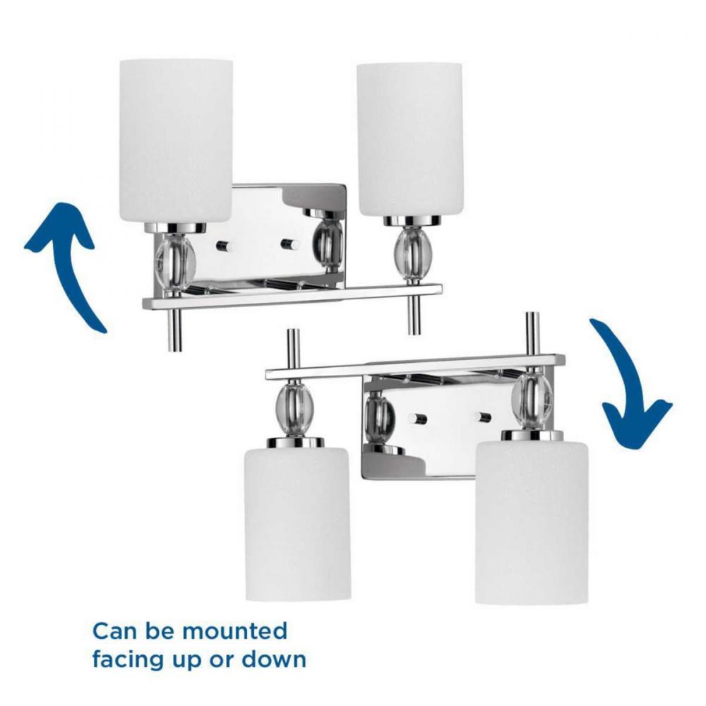 Ideal for a bathroom and powder room.;Perfect for coastal, luxe, modern, and transitional style settings;Crisp polished chrome finish;Elegant etched linen glass shades;Includes installation instructions and mounting hardware;Use 2 medium base bulbs that ar