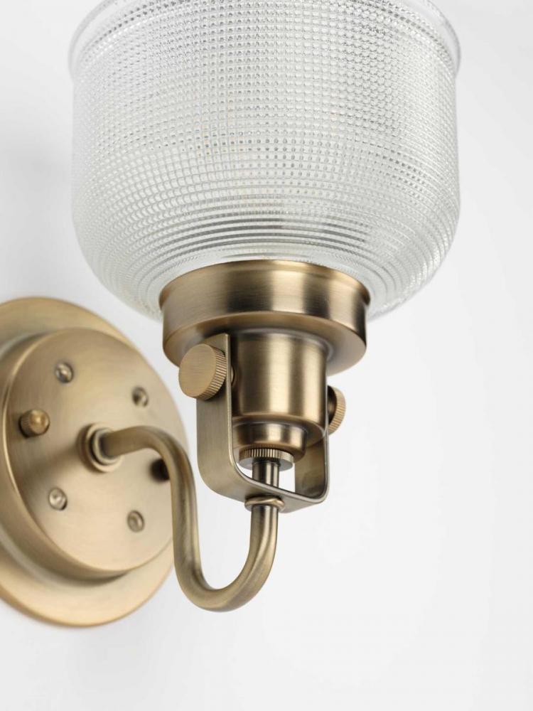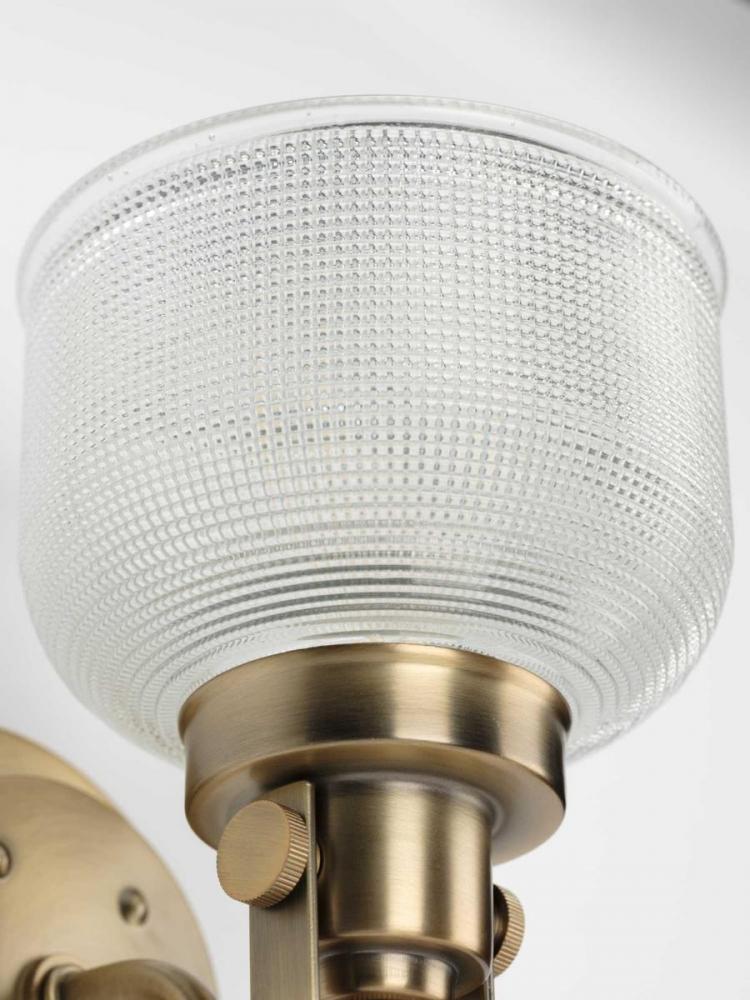 Ideal for a bathroom, hall, or foyer;Perfect for coastal, farmhouse, transitional, and vintage electric style settings;Golden vintage brass finish;Stunning clear double prismatic glass shade;Mount the light fixture facing up or down;Use 1 medium base bulb