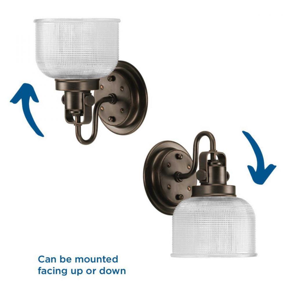 Ideal for a bathroom, hallway, or foyer;Perfect for coastal, farmhouse, transitional, and vintage electric style settings;Handsome venetian bronze finish;Stunning clear double prismatic glass shade;Mount the light fixture facing up or down;Use 1 medium bas