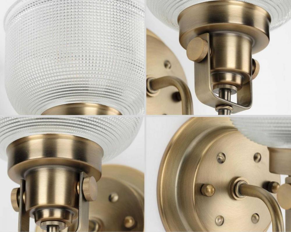 Ideal for a bathroom;Perfect for coastal, farmhouse, transitional, and vintage electric style settings;Golden vintage brass finish;Stunning clear double prismatic glass shades;Mount the light fixture facing up or down;Use 4 medium base bulbs that are sold
