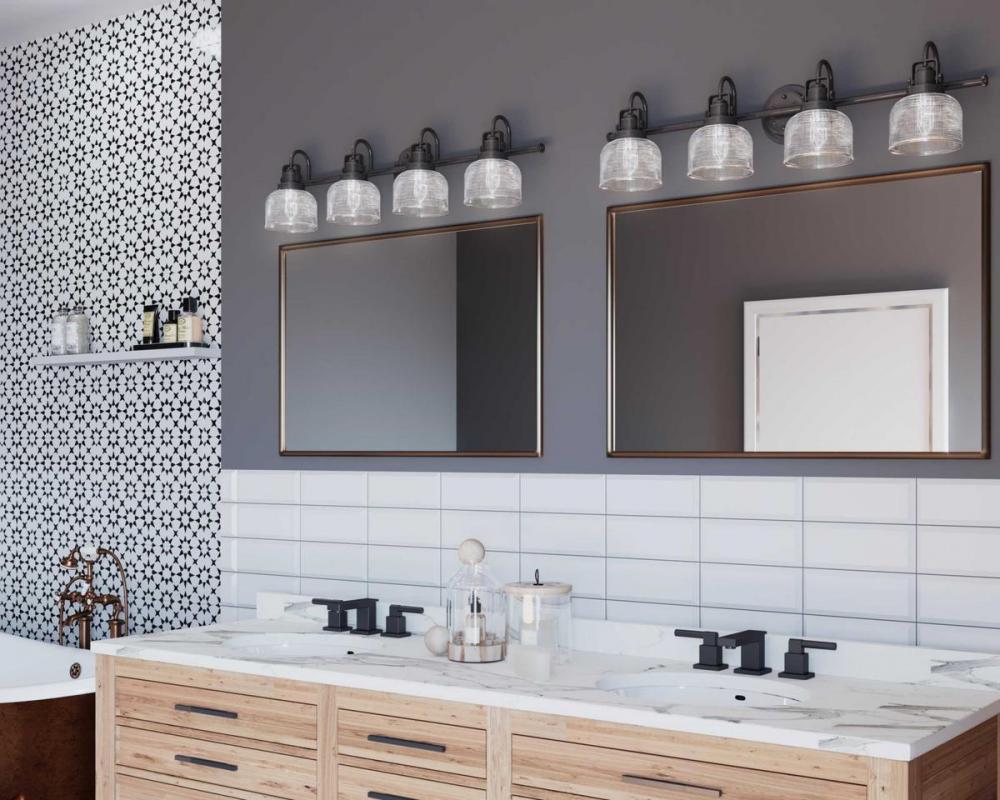 Ideal for a bathroom;Perfect for coastal, farmhouse, transitional, and vintage electric style settings;Handsome venetian bronze finish;Stunning clear double prismatic glass shades;Mount the light fixture facing up or down;Use 4 medium base bulbs that are s