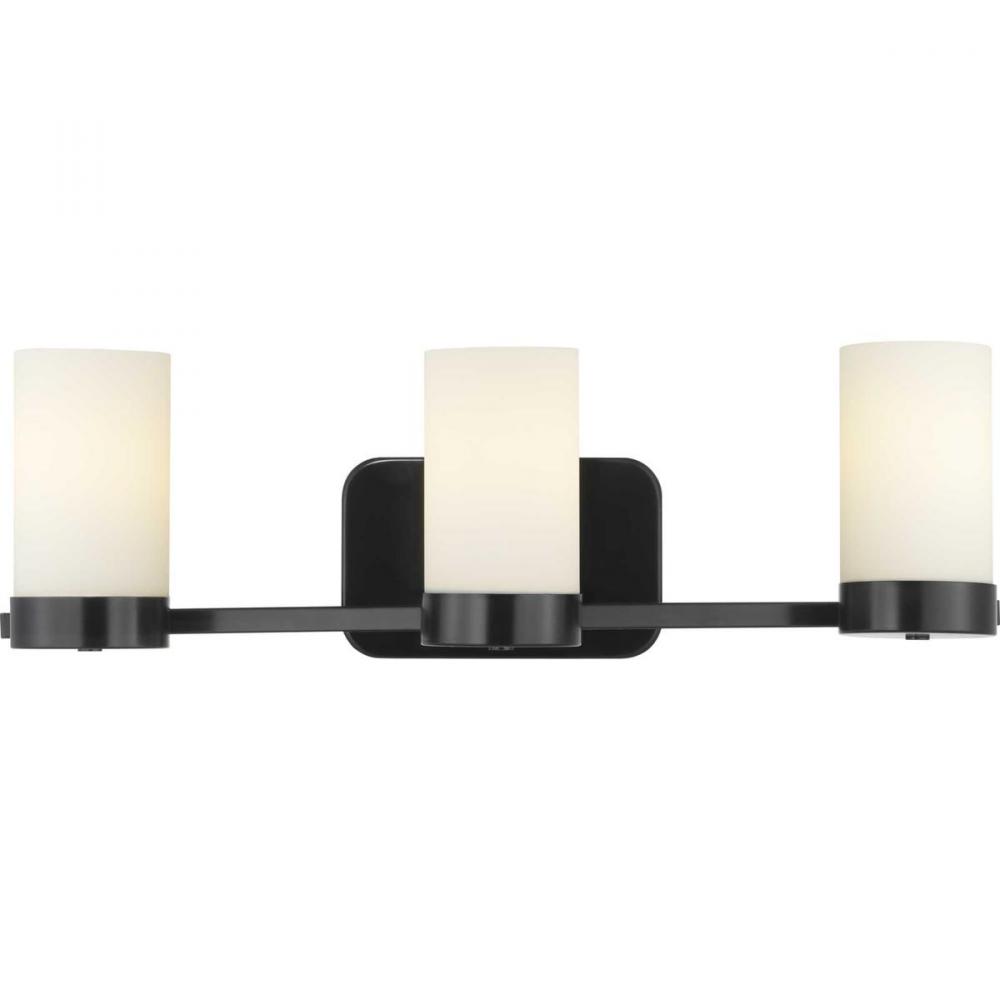 Ideal for a bathroom;Perfect for mid-century modern and modern style settings;Classic matte black finish;Elegant etched white glass shades;Mount the light fixture facing up or down;Use 3 medium base bulbs that are sold separately (100 W max - LED/CFL/incan