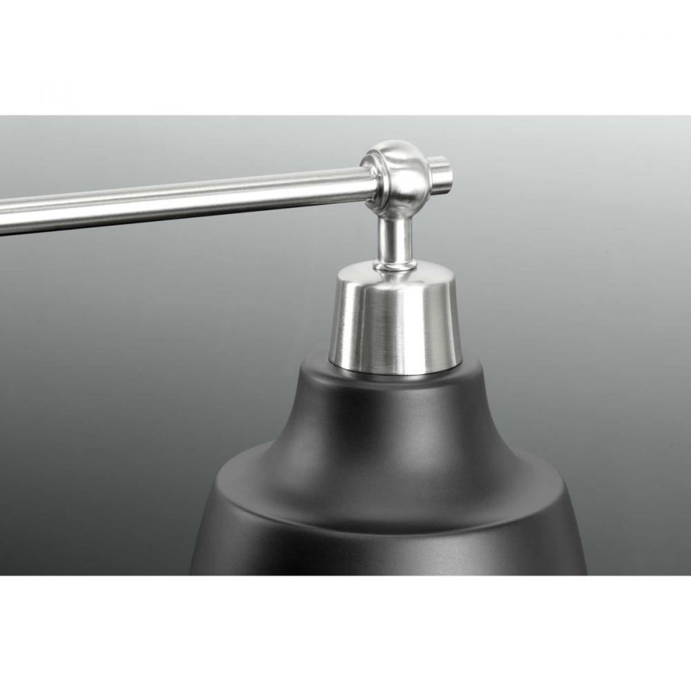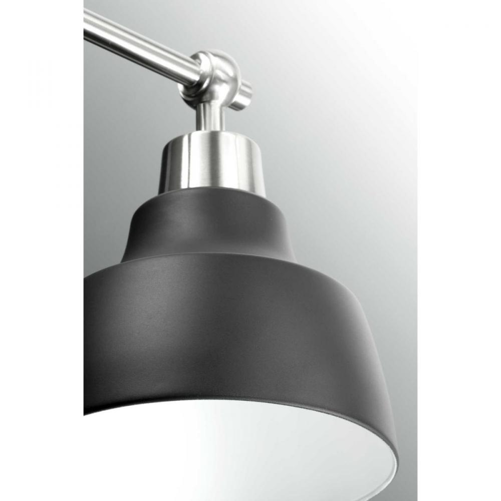Ideal for a bathroom and powder room.;Perfect for coastal, farmhouse, and urban industrial style settings;Graphite finish with beautiful brushed nickel accents;Gorgeous graphite metal shades;Mount the light fixture facing up or down;Use 2 medium base bulbs