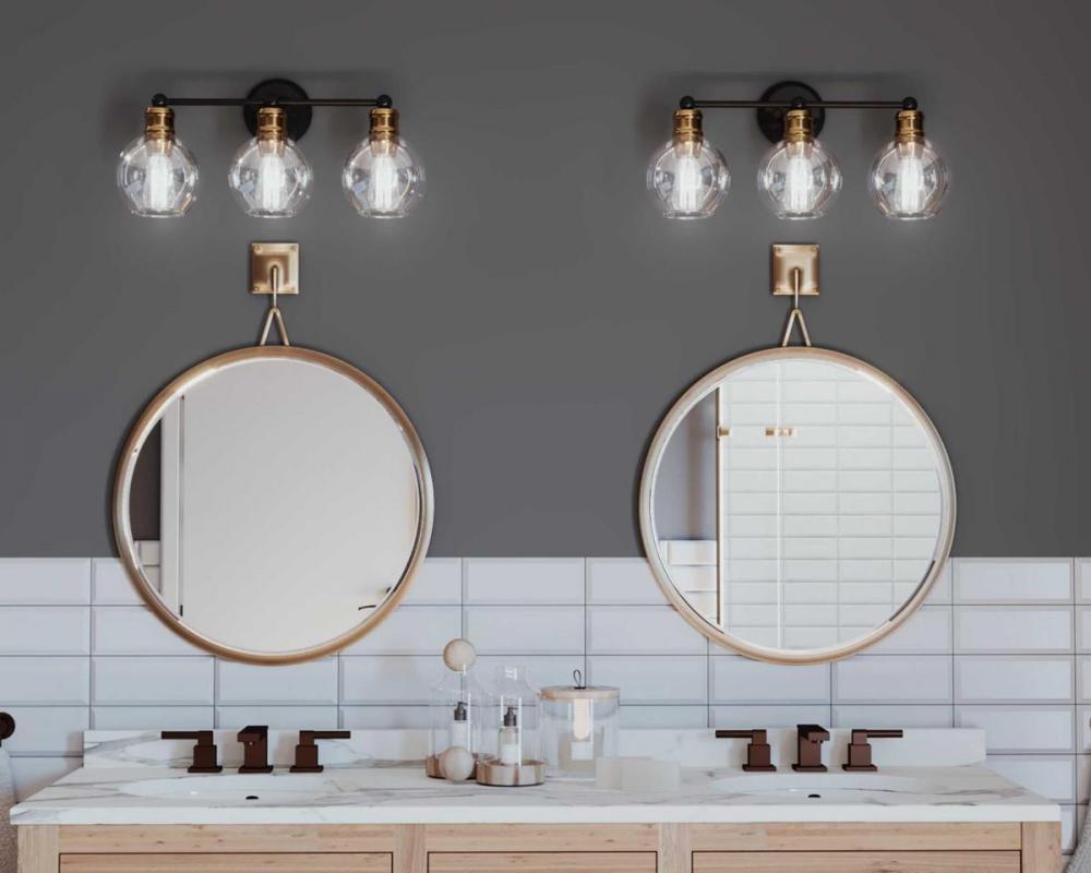 Ideal for a bathroom;Perfect for coastal, farmhouse, and vintage electric style settings;Handsome antique bronze finish with vintage brass accents;Crisp clear glass shades;Mount the light fixture facing up or down;Use 3 medium base bulbs that are sold sepa