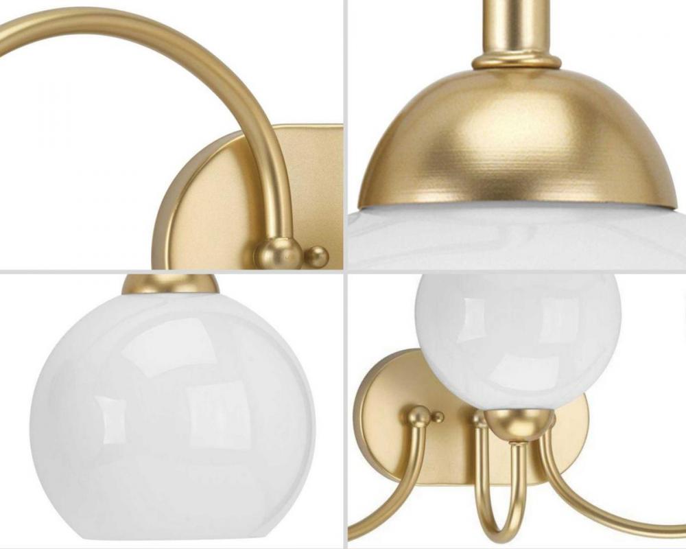 Ideal for a bathroom;Perfect for mid-century modern and modern style settings;Beautiful vintage gold finish;Elegant opal glass shades;Mount the light fixture facing up or down;Use 3 medium base bulbs that are sold separately (75 W max - LED/CFL/incandescen