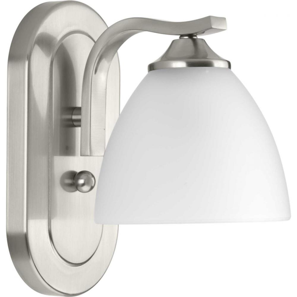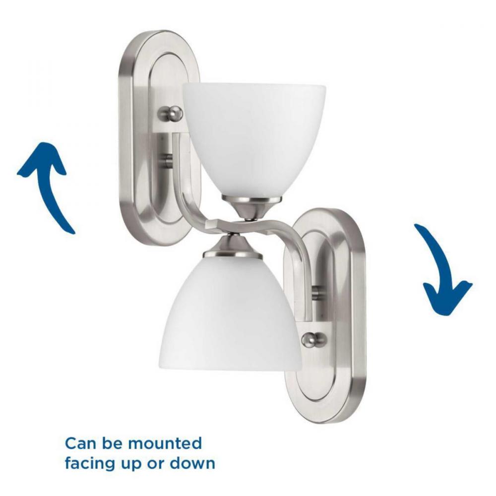 Ideal for a bathroom, dining room, hallway, or foyer;Perfect for traditional and transitional style settings;Beautiful brushed nickel finish;Elegant etched glass shade;Mount the light fixture facing up or down;Use 1 medium base bulb that is sold separately