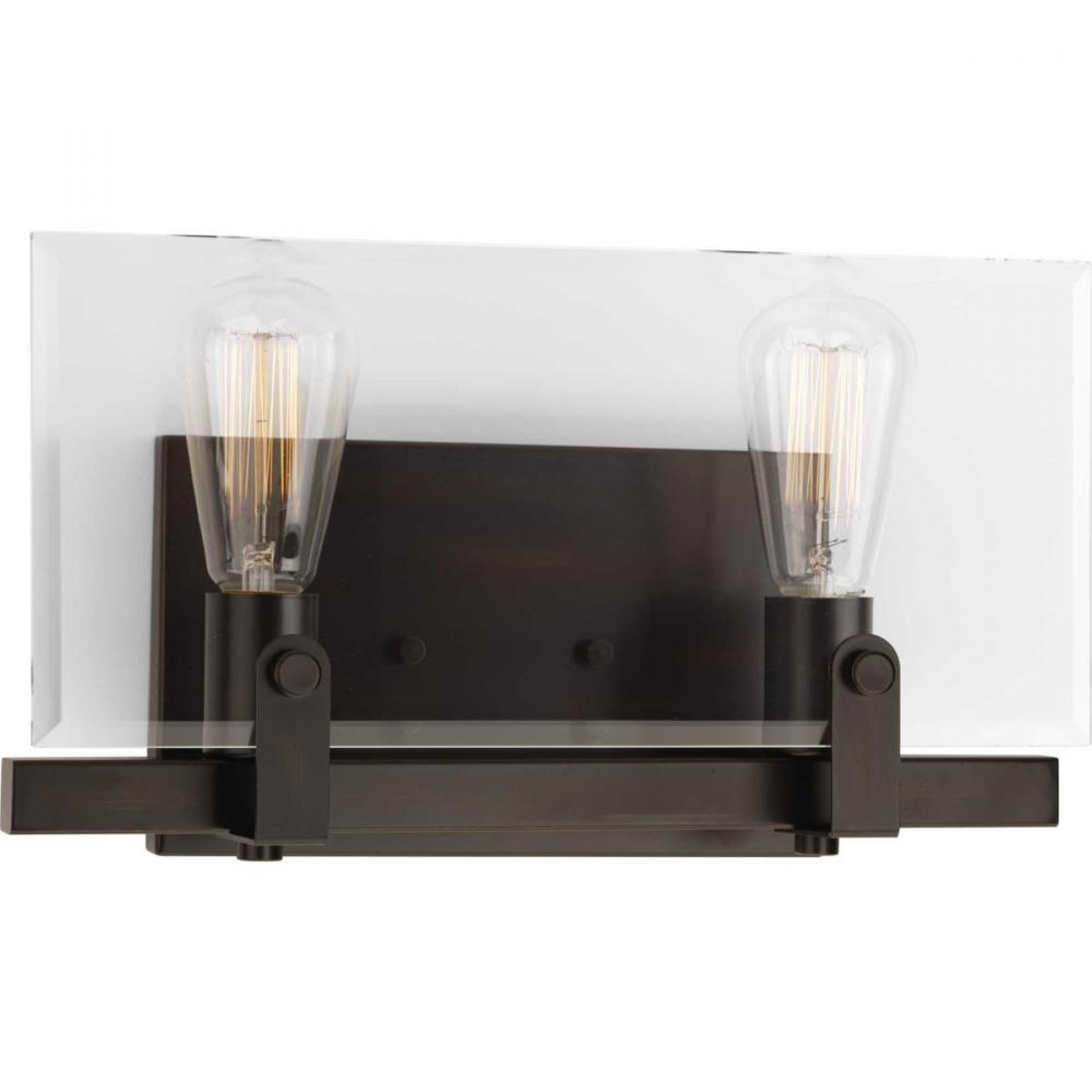 Inspired by modern architecture. Glayse features handsome details for variety of interior design styles. The frameless unbounded beveled glass creates beautiful light and reflection. The structure of Glayse is the focal point of the design, where form follows function. Two-Light bath & vanity is complimented by a Antique Bronze finish.