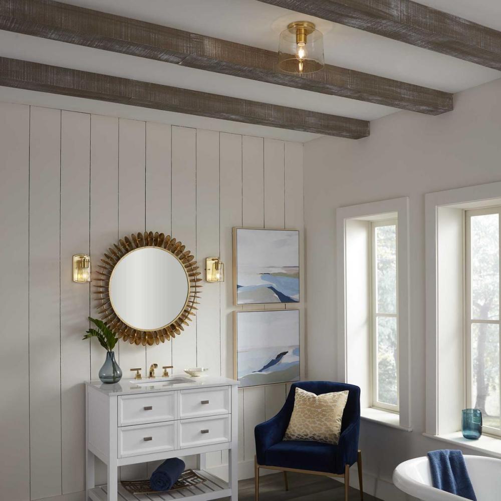 Ideal for a bathroom, hall, or foyer;Perfect for new traditional, traditional, and transitional style settings;Golden satin brass finish;Crisp clear glass shade;Mount the light fixture facing up or down;Use 1 medium base bulb that is sold separately (60 W