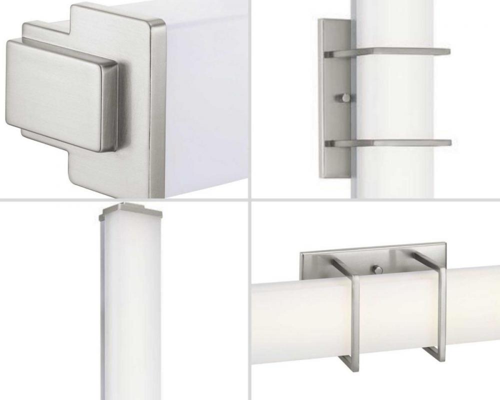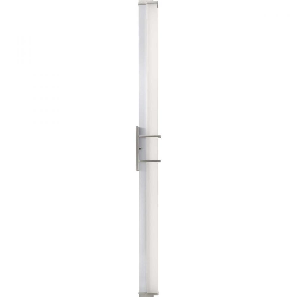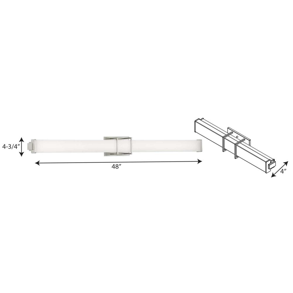 Ideal for a bathroom;Perfect for modern style settings;Beautiful brushed nickel finish;Crisp white acrylic shade;Fixture can mount horizontal and vertical;Includes 1 integrated LED (44 W), 3250 lumens, 3000 K, 90 CRI, dimmable;Measures 48-inch width by 4.