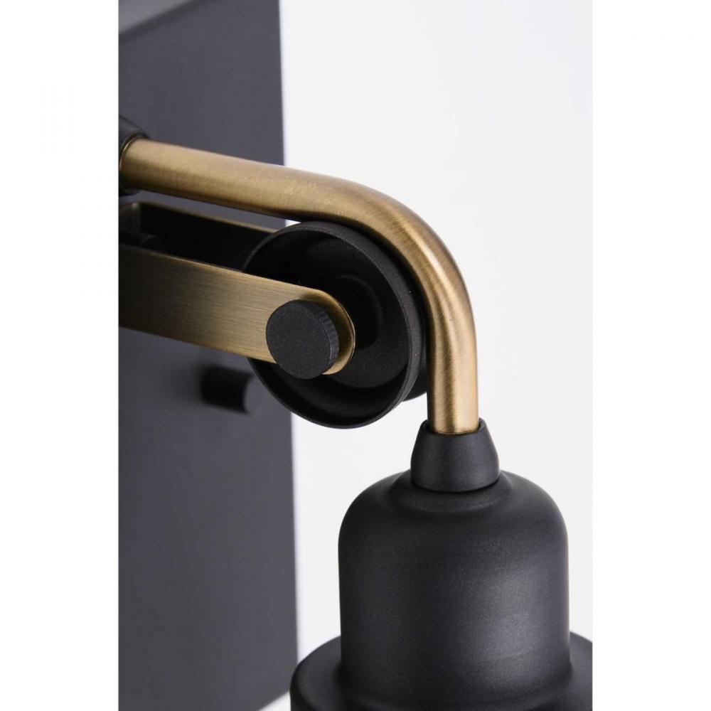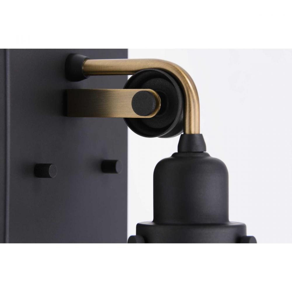 The Rushton one-light bath implies a sense of age and history with a mixed metal finish of Graphite accented by an Antique Brass tube arm. The refined backplate supports the charming pulley wheel that holds the antique-style socket. A clear glass shade circles an exposed bulb for an extra pinch of vintage taste that is just right for a bath mirror or wall sconce in industrial and farmhouse interiors.