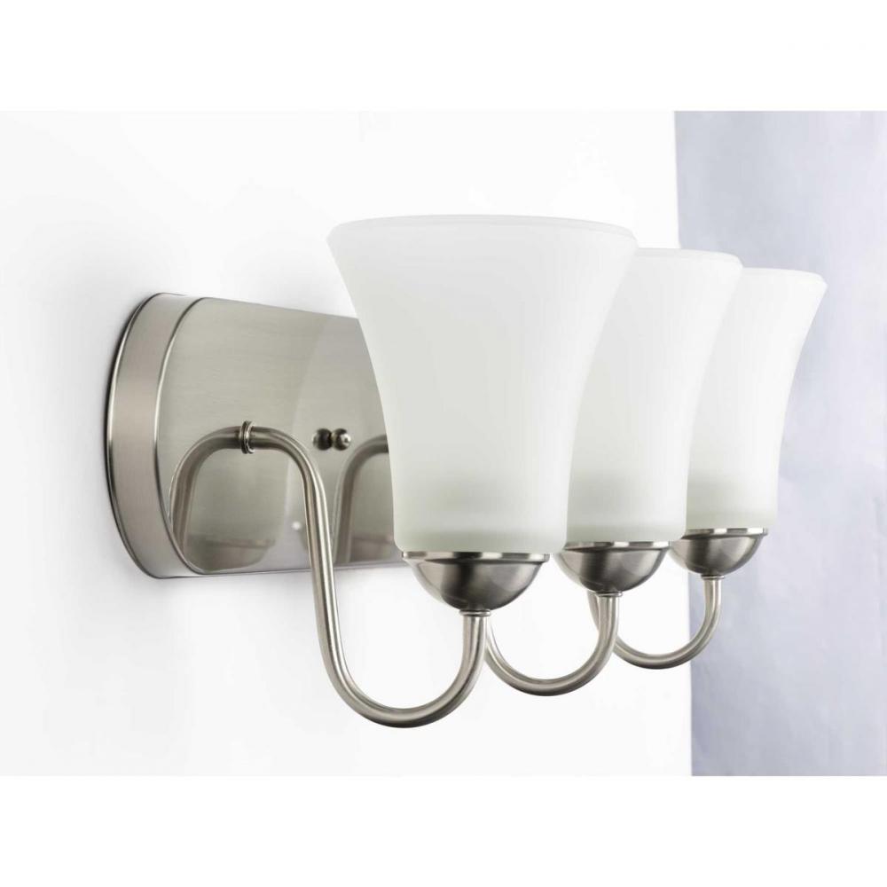Ideal for a bathroom;Perfect for traditional and transitional style settings;Beautiful brushed nickel finish;Elegant etched glass shades;Mount the light fixture facing up or down;Use 3 medium base bulbs that are sold separately (100 W max - LED/CFL/incande
